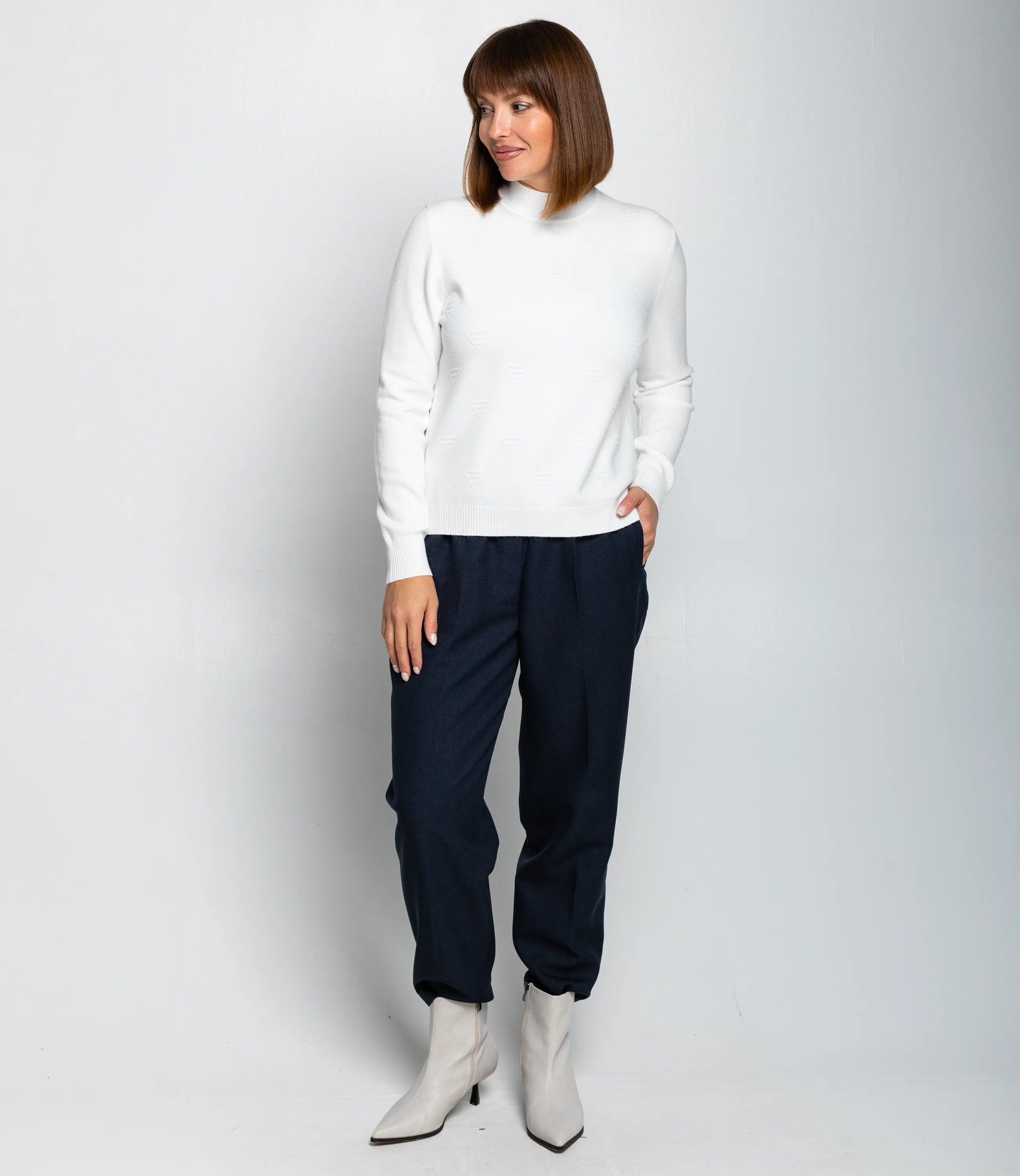 Водолазка — это часть гардероба, которая подчёркивает женственность и утончённость каждой покупательницы. Модель выполнена из мягкой трикотажной ткани средней плотности с мелким рельефным узором в виде повторяющихся геометрических фигур; прямой свободный силуэт, длинные рукава и высокий воротник‑стойка создают универсальный и современный образ. Воротник, манжеты и низ изделия оформлены плотной резинкой, что обеспечивает аккуратную посадку и сохранение формы при активной носке. Для пошива использована ткань 65% хлопок, 30% полиэстер, 5% эластан: хлопок дарит комфорт и хорошую воздухопроницаемость, полиэстер повышает прочность и стойкость цвета, эластан обеспечивает эластичность и восстановление посадки после деформаций. Материал устойчив к многократным стиркам, практически не даёт усадки и долго сохраняет презентабельный внешний вид, что снижает долю возвратов и рекламаций. Для оптовых покупателей водолазка представляет собой выгодную и оборотистую позицию: базовый, но текстурный дизайн легко интегрируется в разные ценовые сегменты, упрощает формирование размерного ряда и способствует быстрой оборачиваемости. Рекомендуем включать модель в капсулы «базовый гардероб», «слоёные образы» и «городской стиль», комплектовать с пальто, жакетами, юбками и брюками для увеличения среднего чека. Подбор ключевых оттенков и комплектов размеров ускоряет реализацию на точке продаж. Цвета и фактура полностью соответствуют изображениям в карточке товара.