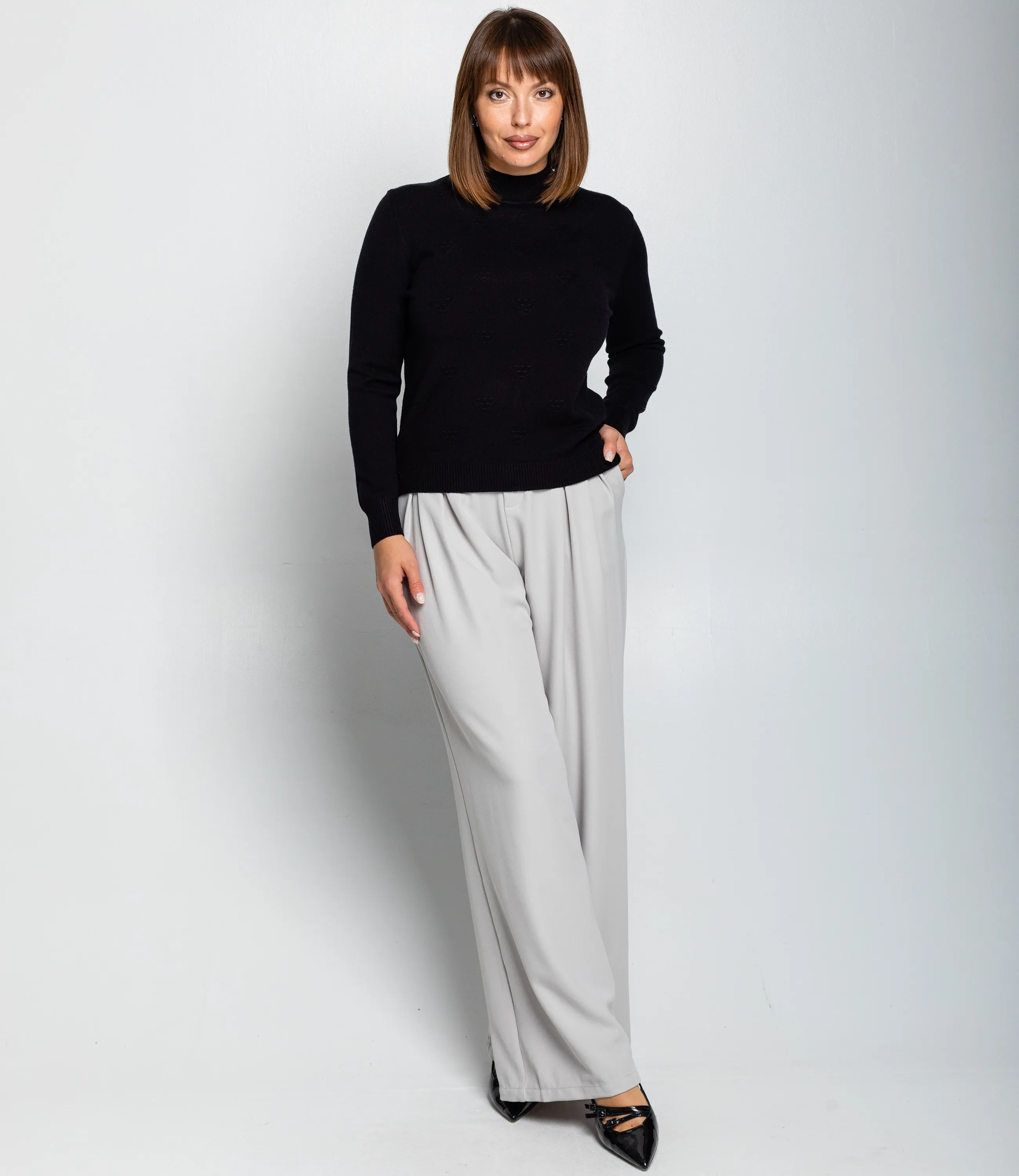 Водолазка — это часть гардероба, которая подчёркивает женственность и утончённость каждой покупательницы. Модель выполнена из мягкой трикотажной ткани средней плотности с мелким рельефным узором в виде повторяющихся геометрических фигур; прямой свободный силуэт, длинные рукава и высокий воротник‑стойка создают универсальный и современный образ. Воротник, манжеты и низ изделия оформлены плотной резинкой, что обеспечивает аккуратную посадку и сохранение формы при активной носке. Для пошива использована ткань 65% хлопок, 30% полиэстер, 5% эластан: хлопок дарит комфорт и хорошую воздухопроницаемость, полиэстер повышает прочность и стойкость цвета, эластан обеспечивает эластичность и восстановление посадки после деформаций. Материал устойчив к многократным стиркам, практически не даёт усадки и долго сохраняет презентабельный внешний вид, что снижает долю возвратов и рекламаций. Для оптовых покупателей водолазка представляет собой выгодную и оборотистую позицию: базовый, но текстурный дизайн легко интегрируется в разные ценовые сегменты, упрощает формирование размерного ряда и способствует быстрой оборачиваемости. Рекомендуем включать модель в капсулы «базовый гардероб», «слоёные образы» и «городской стиль», комплектовать с пальто, жакетами, юбками и брюками для увеличения среднего чека. Подбор ключевых оттенков и комплектов размеров ускоряет реализацию на точке продаж. Цвета и фактура полностью соответствуют изображениям в карточке товара.