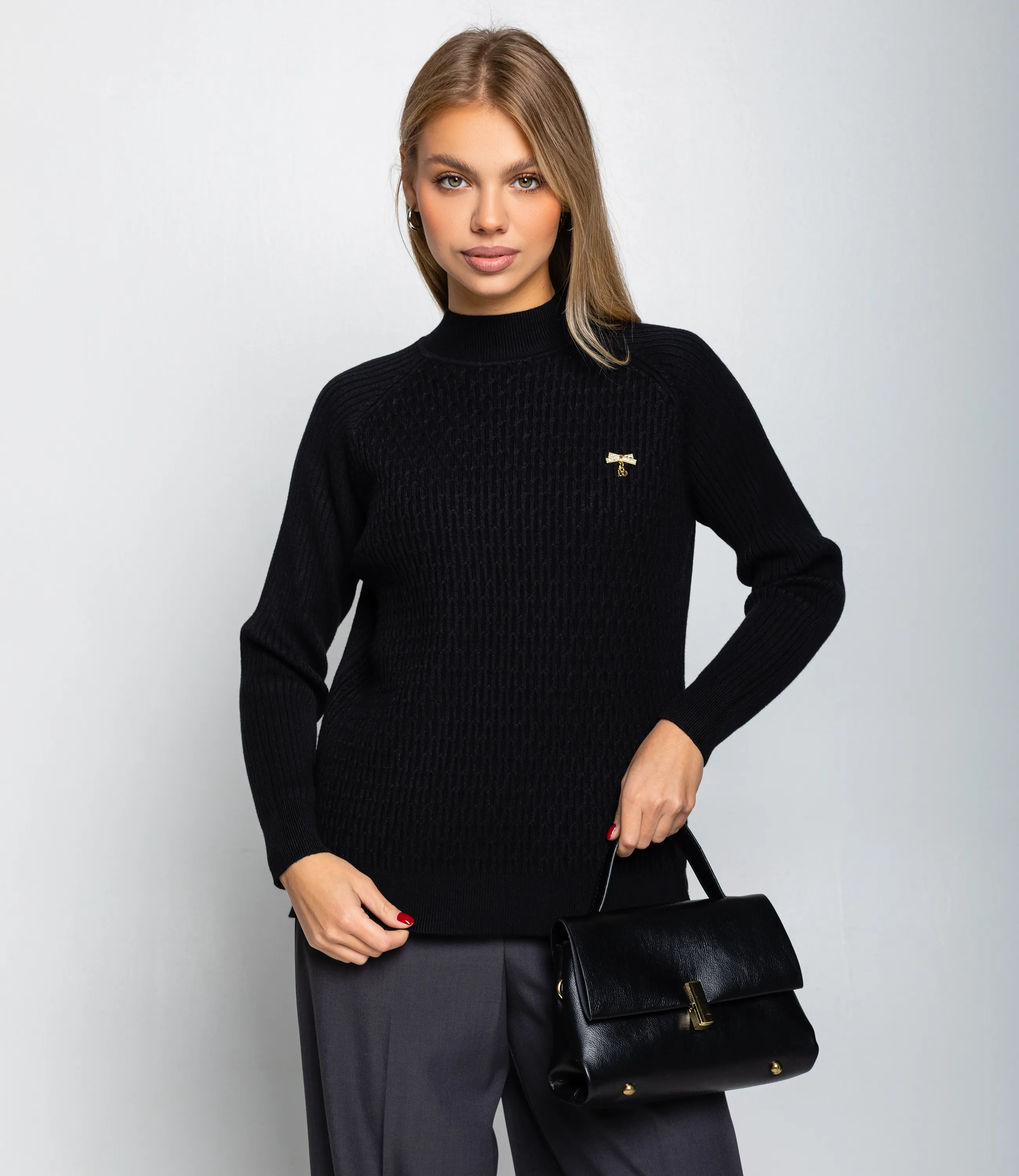 Джемпер — это часть гардероба, которая подчёркивает женственность и утончённость каждой покупательницы. Джемпер прямого силуэта средней длины, чуть ниже линии бёдер, с небольшой втачной горловиной‑стойкой средней высоты, выполненный из равномерного трикотажного полотна средней плотности с тонкой фактурной структурой «резинка» в центральной части и гладкой чулочной вязкой по рукавам; плечи оформлены со вставкой реглан, рукава длинные, зауженные к манжетам, манжеты и плотная нижняя кромка связаны мелкой резинкой, плотно удерживающей форму, боковые швы аккуратно обработаны, на одной стороне груди декоративный металлический значок небольшого размера. Для пошива использована ткань 65% хлопок, 30% полиэстер, 5% эластан. Материал устойчив к частым стиркам, не деформируется и долго сохраняет презентабельный вид, что снижает процент возвратов и рекламаций при розничной продаже. Для оптовых покупателей джемпер представляет собой выгодную и оборотистую позицию: базовый и универсальный дизайн легко интегрируется в разные ценовые и стилистические решения, упрощает формирование размерного ряда и повышает оборачиваемость. Рекомендуем выкладывать модель в зонах базовых коллекций и композиций «повседневный гардероб», предлагать наборы ключевых оттенков, комплекты «верх + низ» и кросс‑селл с пальто, жакетами и юбками для увеличения среднего чека. Цвета и фактура полностью соответствуют фотографиям в карточке товара. Рост 168, 89-63-90.