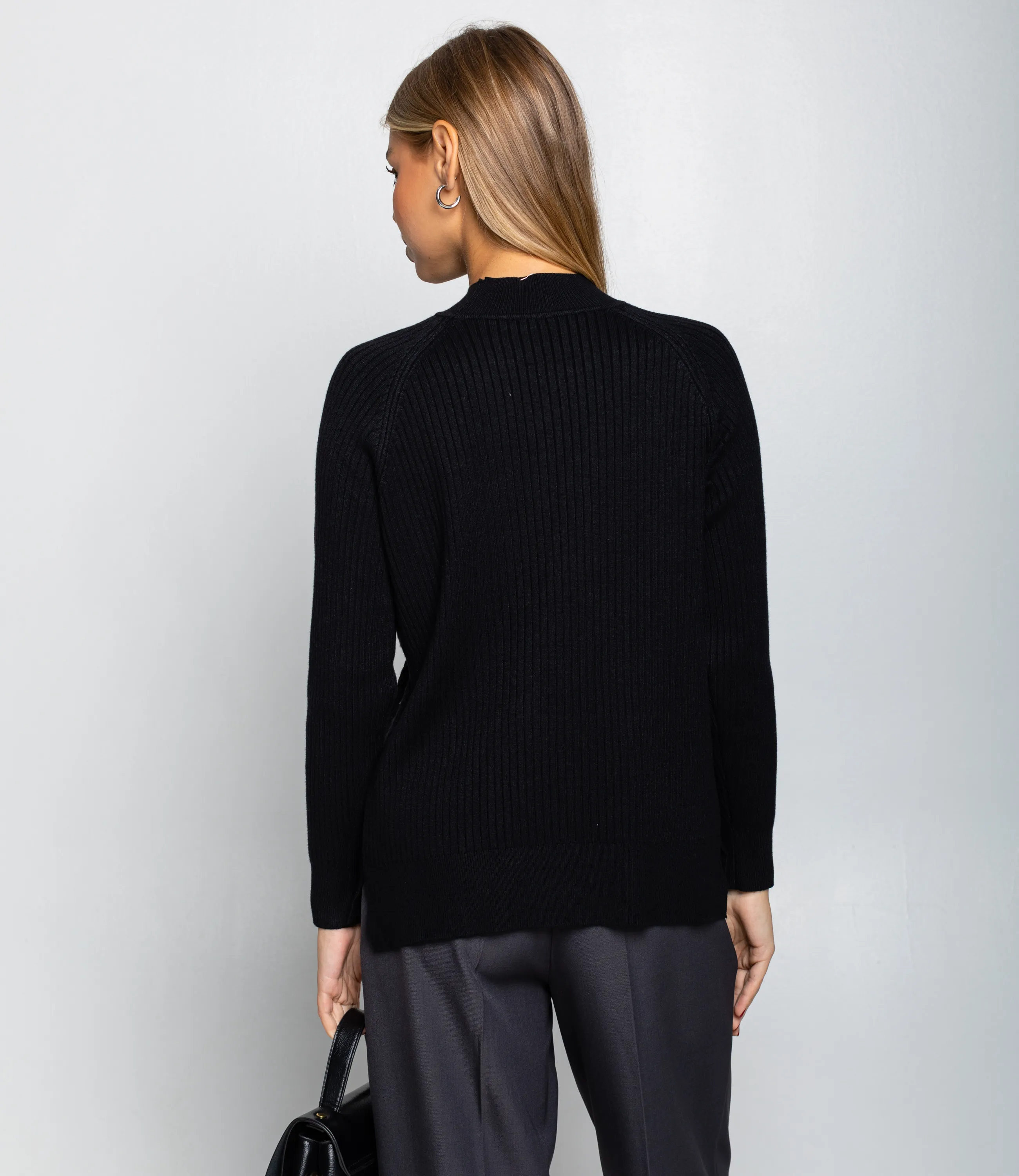 Джемпер — это часть гардероба, которая подчёркивает женственность и утончённость каждой покупательницы. Джемпер прямого силуэта средней длины, чуть ниже линии бёдер, с небольшой втачной горловиной‑стойкой средней высоты, выполненный из равномерного трикотажного полотна средней плотности с тонкой фактурной структурой «резинка» в центральной части и гладкой чулочной вязкой по рукавам; плечи оформлены со вставкой реглан, рукава длинные, зауженные к манжетам, манжеты и плотная нижняя кромка связаны мелкой резинкой, плотно удерживающей форму, боковые швы аккуратно обработаны, на одной стороне груди декоративный металлический значок небольшого размера. Для пошива использована ткань 65% хлопок, 30% полиэстер, 5% эластан. Материал устойчив к частым стиркам, не деформируется и долго сохраняет презентабельный вид, что снижает процент возвратов и рекламаций при розничной продаже. Для оптовых покупателей джемпер представляет собой выгодную и оборотистую позицию: базовый и универсальный дизайн легко интегрируется в разные ценовые и стилистические решения, упрощает формирование размерного ряда и повышает оборачиваемость. Рекомендуем выкладывать модель в зонах базовых коллекций и композиций «повседневный гардероб», предлагать наборы ключевых оттенков, комплекты «верх + низ» и кросс‑селл с пальто, жакетами и юбками для увеличения среднего чека. Цвета и фактура полностью соответствуют фотографиям в карточке товара. Рост 168, 89-63-90.