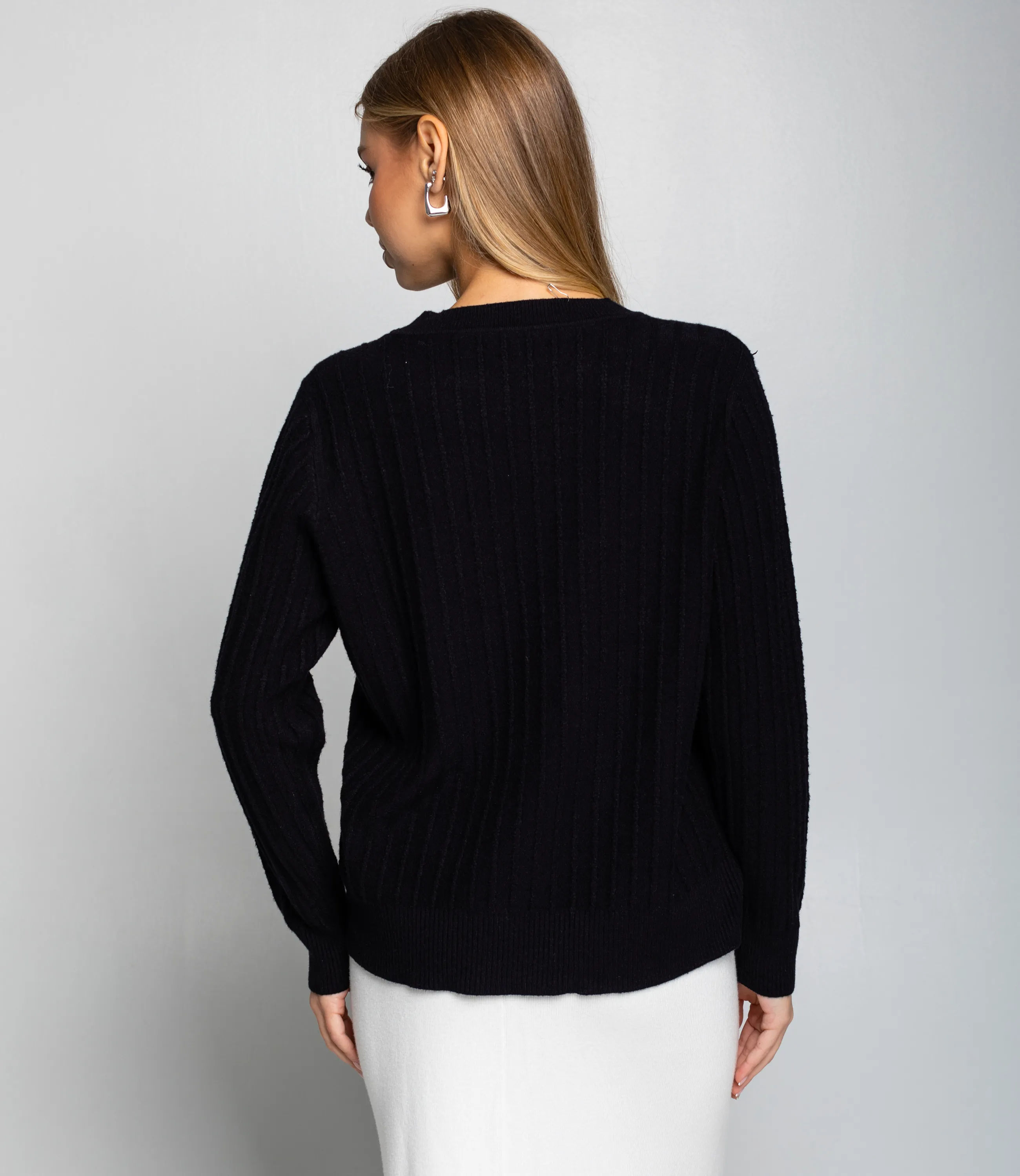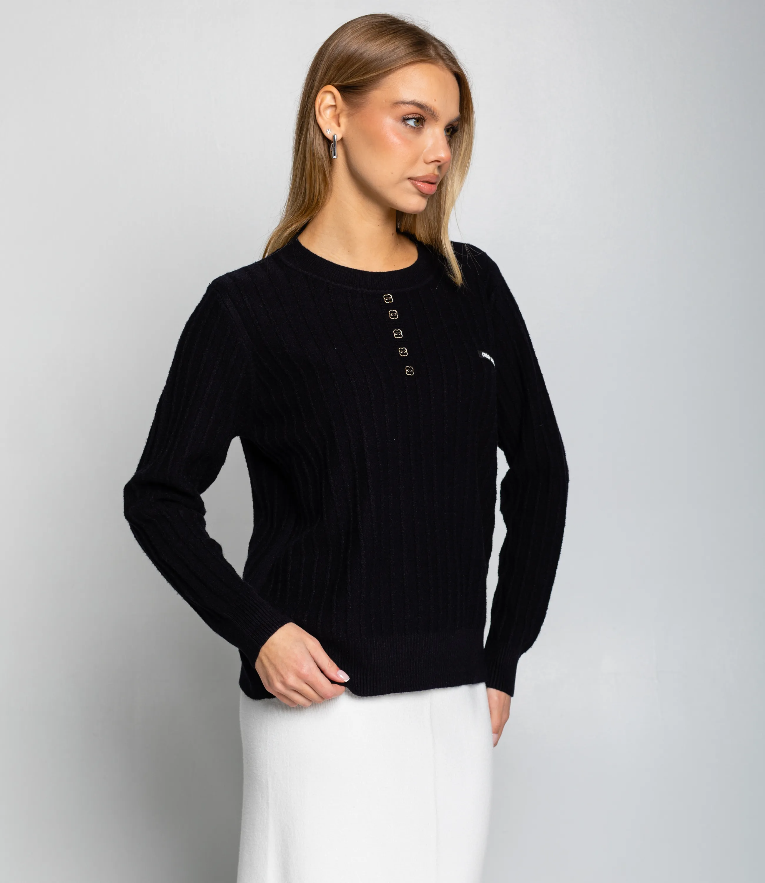 Джемпер — это универсальная часть гардероба, которая выделяет женственность и придает образу аккуратность и стиль. Модель прямого кроя с круглым вырезом прекрасно подойдет для осенне-зимнего и демисезонного ассортимента вашего магазина. Ее выбирают покупательницы, которые ценят сочетание качества и привлекательной цены. Джемпер выполнен из мягкой трикотажной ткани с фактурным ребристым узором; манжеты и низ изделия имеют плотную резинку, обеспечивающую комфортную посадку и сохранение формы. Ряд декоративных пуговиц на груди придает изделию стильный акцент, делая его востребованным в повседневных и повседневно-деловых образах. Для пошива использована ткань: 65% хлопок, 30% полиэстер, 5% эластан. Материал отличается приятной на ощупь структурой, эластичностью и хорошей износостойкостью; даже после многократных стирок изделие не утратит первоначального вида и посадки. Обратите внимание на насыщенные оттенки: цвет соответствует фотографии на сайте, что важно при формировании товарной витрины. На странице представлена таблица размеров, с помощью которой можно самостоятельно снять мерки и подобрать нужный размер. Мы предлагаем выгодные оптовые условия, гибкую ценовую политику и стабильные поставки, что позволит вам формировать привлекательную наценку и обеспечивать высокую оборотность. Цена установлена адекватная, а качество — стабильное: предложите своим клиенткам джемпер, сочетающий комфорт, стиль и надежность. Рост модели 164, 83-61-89.