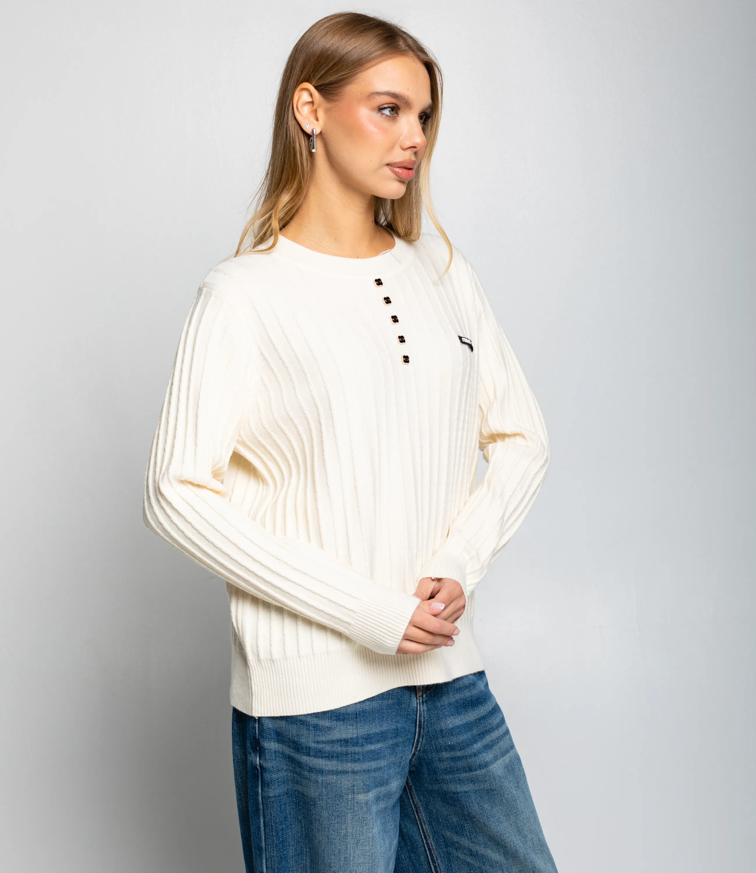Джемпер — это универсальная часть гардероба, которая выделяет женственность и придает образу аккуратность и стиль. Модель прямого кроя с круглым вырезом прекрасно подойдет для осенне-зимнего и демисезонного ассортимента вашего магазина. Ее выбирают покупательницы, которые ценят сочетание качества и привлекательной цены. Джемпер выполнен из мягкой трикотажной ткани с фактурным ребристым узором; манжеты и низ изделия имеют плотную резинку, обеспечивающую комфортную посадку и сохранение формы. Ряд декоративных пуговиц на груди придает изделию стильный акцент, делая его востребованным в повседневных и повседневно-деловых образах. Для пошива использована ткань: 65% хлопок, 30% полиэстер, 5% эластан. Материал отличается приятной на ощупь структурой, эластичностью и хорошей износостойкостью; даже после многократных стирок изделие не утратит первоначального вида и посадки. Обратите внимание на насыщенные оттенки: цвет соответствует фотографии на сайте, что важно при формировании товарной витрины. На странице представлена таблица размеров, с помощью которой можно самостоятельно снять мерки и подобрать нужный размер. Мы предлагаем выгодные оптовые условия, гибкую ценовую политику и стабильные поставки, что позволит вам формировать привлекательную наценку и обеспечивать высокую оборотность. Цена установлена адекватная, а качество — стабильное: предложите своим клиенткам джемпер, сочетающий комфорт, стиль и надежность. Рост модели 164, 83-61-89.