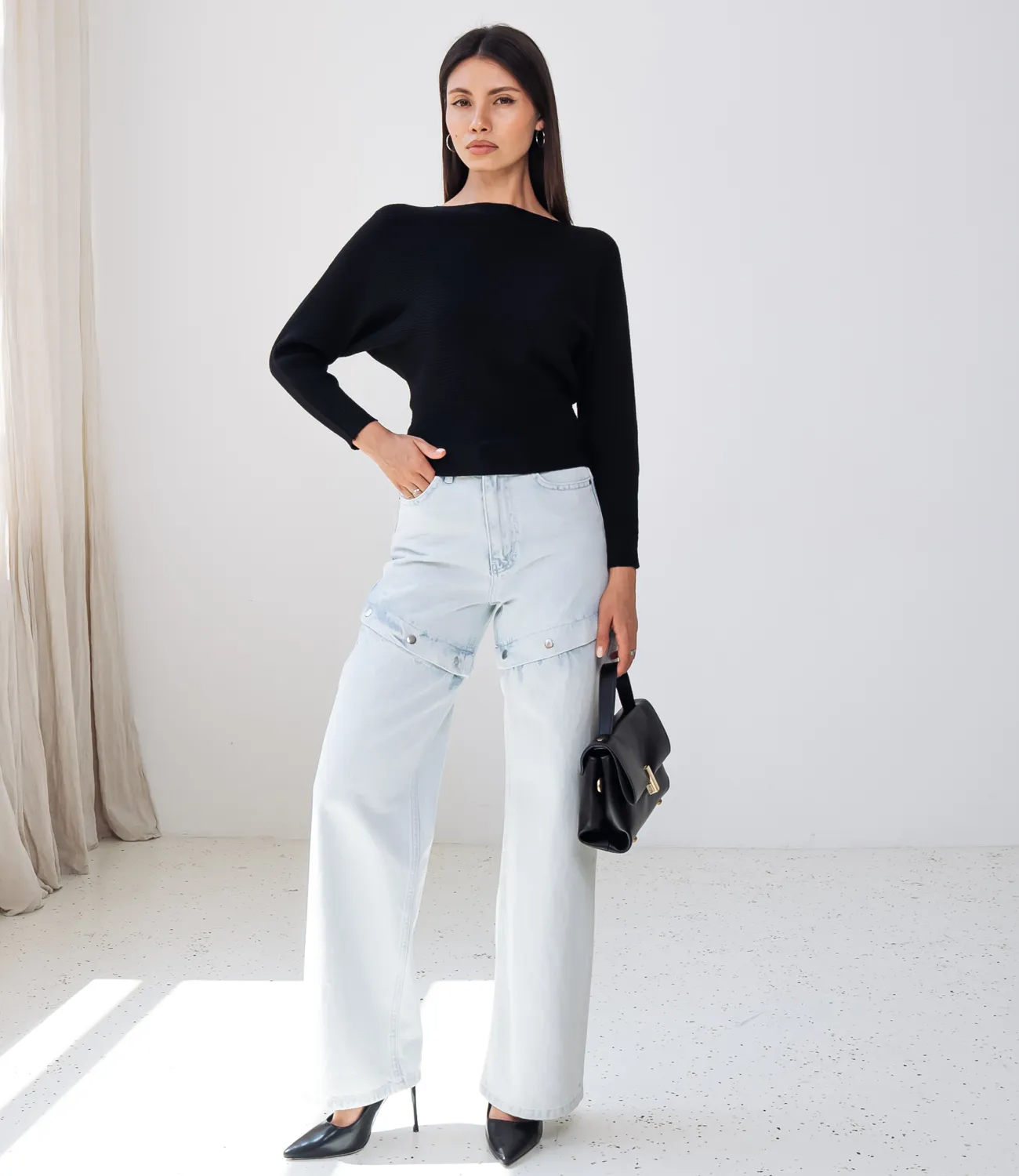 Джемпер — это элегантный и стильный элемент гардероба, который подчеркивает уникальность каждой женщины. Эта модель, выполненная из нежной трикотажной ткани с мелкой горизонтальной ребристой текстурой, станет отличным выбором как для повседневного образа, так и для более деловых сочетаний. Свободный крой в верхней части и завышенная, более плотная посадка на уровне пояса создают эффект присборенности, добавляя нотку игривости и динамики в образ. Длинные узкие рукава, приталенные к рукам, добавляют изящества общей форме, делая джемпер невероятно привлекательным. Широкая горловина, слегка асимметричная, придаёт изделию современный и стильный вид, позволяя экспериментировать с аксессуарами. Благодаря комфортной посадке и высококачественному составу (50% вискоза, 45% акрил и 5% шерсть), джемпер подарит тепло и уют в любое время года. Мы уверены, что эта модель станет настоящей находкой для вашего магазина, поскольку сочетает в себе стиль, комфорт и идеальное качество. Для удобства покупателей на странице доступна таблица размеров, что поможет им легко найти идеальный размер. Предложенная цена является доступной, а значит, ваши клиентки смогут с легкостью добавить этот стильный элемент в свой гардероб. Не упустите шанс предложить своим покупателям этот превосходный джемпер, который позволят им чувствовать себя уверенно и элегантно в любой обстановке! Подарите вашим клиентам возможность выделиться и продемонстрировать свой уникальный стиль с этим удивительным изделием! Рост модели 164 см., 83-61-89.