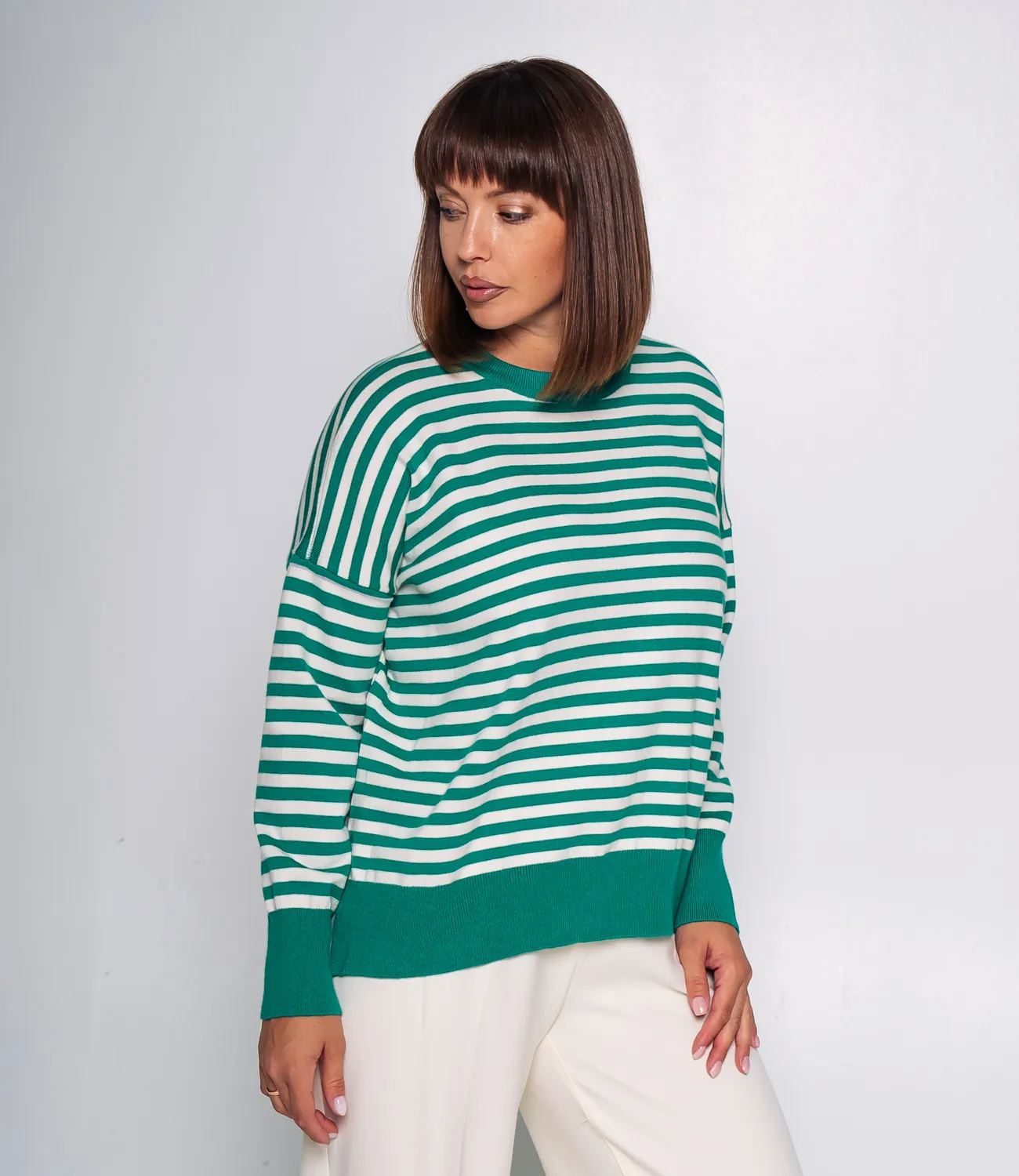 Джемпер — это элегантный и стильный элемент гардероба, который подчеркивает уникальность каждой женщины. Джемпер выполнен в стильном и универсальном дизайне с горизонтальными полосами, которые придают модели современный и динамичный вид. Классический круглый вырез горловины, а также широкие резинки на манжетах и по низу изделия обеспечивают комфортную посадку и сохраняют форму. Свободный крой делает джемпер удобным для повседневной носки, обеспечивая свободу движений и лёгкость в сочетании с другими предметами гардероба. Состав ткани — 65% хлопок и 35% полиэстер.Для удобства покупателей на странице доступна таблица размеров, что поможет им легко найти идеальный размер. Предложенная цена является доступной, а значит, ваши клиентки смогут с легкостью добавить этот стильный элемент в свой гардероб. Не упустите шанс предложить своим покупателям этот превосходный джемпер, который позволят им чувствовать себя уверенно и элегантно в любой обстановке! Подарите вашим клиентам возможность выделиться и продемонстрировать свой уникальный стиль с этим удивительным изделием!