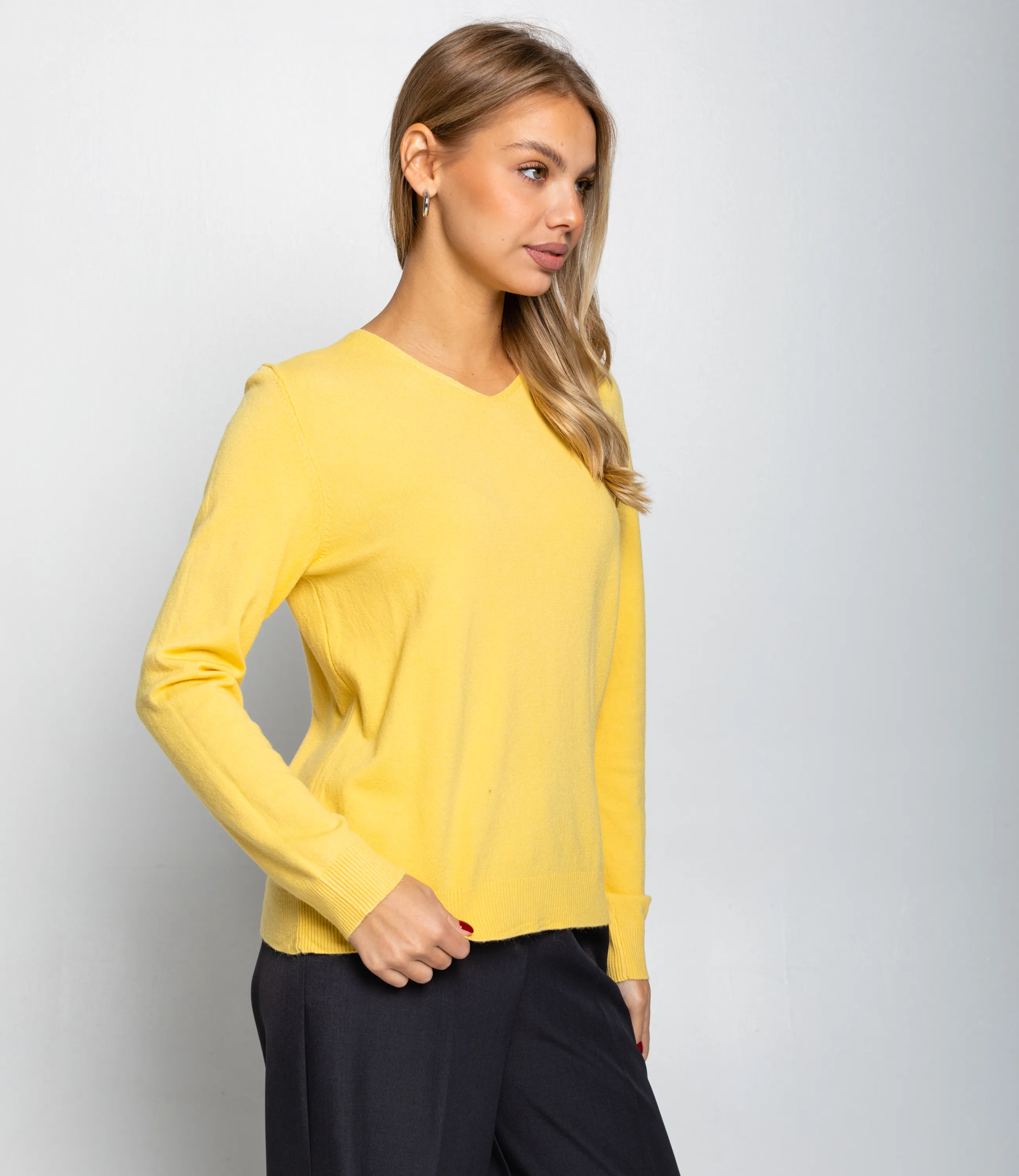 Джемпер — это часть гардероба, которая подчёркивает женственность и утончённость каждой покупательницы. Джемпер прямого силуэта с чуть свободной, но не мешковатой посадкой длиной до линии бёдер, с V‑образным вырезом умеренной глубины, аккуратно обработанным трикотажной планкой; втачные рукава полной длины с зауженными манжетами, низ изделия оформлен мелкой резинкой, которая плотнее основного полотна и удерживает форму; полотно трикотажное средней плотности, равномерное, гладкое с лёгкой ворсинкой и эластичностью в поперечном направлении, без выраженного узора. Для пошива использована ткань 65% хлопок, 30% полиэстер, 5% эластан. Материал устойчив к частым стиркам, не деформируется и долго сохраняет презентабельный вид, что снижает процент возвратов и рекламаций при розничной продаже. Для оптовых покупателей джемпер представляет собой выгодную и оборотистую позицию: базовый и универсальный дизайн легко интегрируется в разные ценовые и стилистические решения, упрощает формирование размерного ряда и повышает оборачиваемость. Рекомендуем выкладывать модель в зонах базовых коллекций и композиций «повседневный гардероб», предлагать наборы ключевых оттенков, комплекты «верх + низ» и кросс‑селл с пальто, жакетами и юбками для увеличения среднего чека. Цвета и фактура полностью соответствуют фотографиям в карточке товара. Рост 168, 89-63-90.