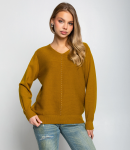Джемпер — это часть гардероба, которая подчёркивает женственность и утончённость каждой покупательницы. Модель выполнена из тонкого вязаного полотна плотно прилегающего силуэта с длинными рукавами и V‑образным вырезом, украшенным аккуратной отделкой из тонкого кружева. Такая же кружевная отделка присутствует на манжетах, добавляя изделию изящные детали. Простой лаконичный крой без лишних декоров делает джемпер универсальным: он идеально смотрится как сам по себе в более элегантных образах, так и в многослойных повседневных сочетаниях. Для пошива использована ткань 65% хлопок, 30% полиэстер, 5% эластан. Хлопок обеспечивает мягкость и комфорт при носке, полиэстер добавляет прочности, стойкости цвета и минимизирует усадку, а эластан — сохраняет идеальную посадку и форму изделия. Тонкий трикотаж приятен на ощупь, легко драпируется и отлично подходит для сочетания с жакетами, плащами и пальто. Для оптовых покупателей джемпер представляет собой выгодную позицию: лаконичная базовая модель с декоративной деталью, которая быстро продаётся в сегментах casual и smart casual. Универсальная посадка и эластичная ткань упрощают формирование размерного ряда и сокращают количество возвратов. Плотный состав и аккуратная отделка снижают процент рекламаций и повышают лояльность клиентов. Цвета насыщенные и соответствуют фото в карточке товара, на странице размещена подробная таблица размеров для точного подбора. Рост модели: 168, параметры: 85-63-92.