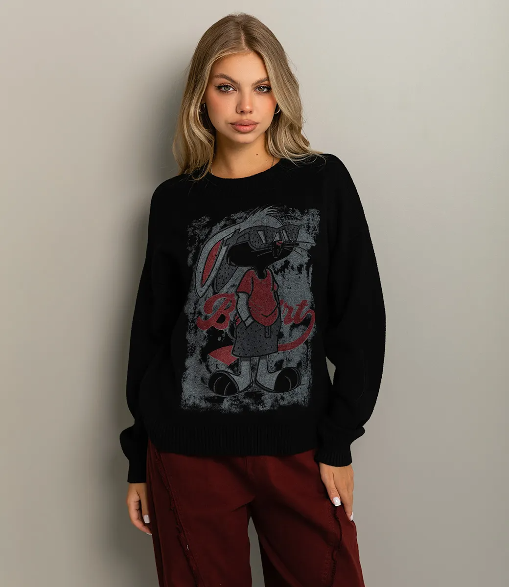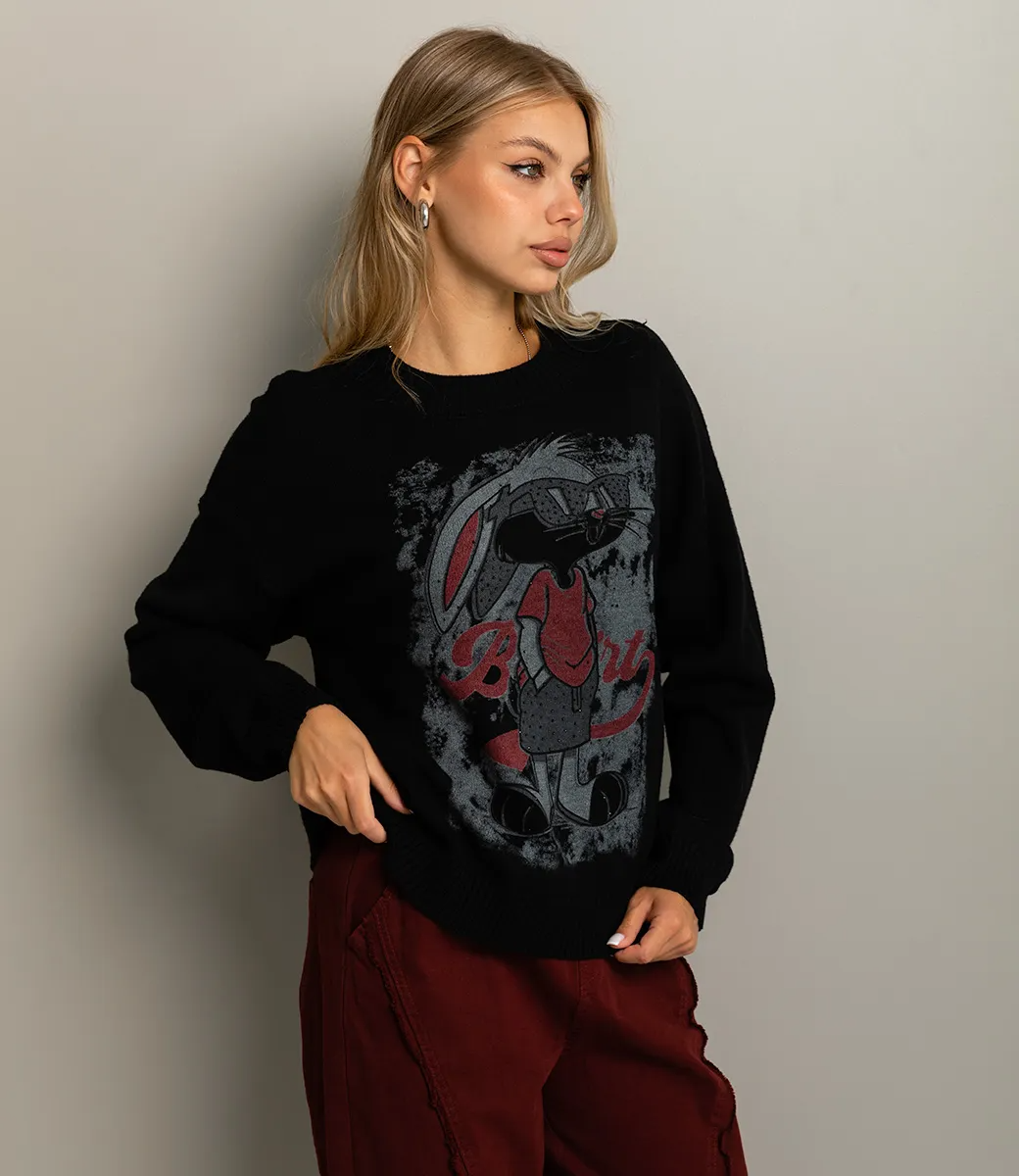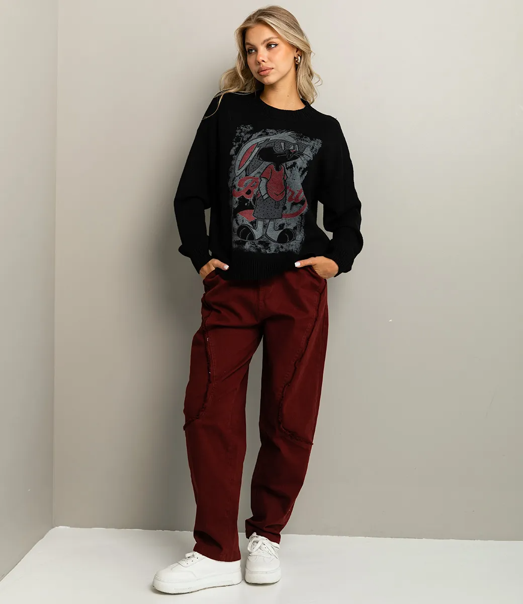 Джемпер — это стильная и универсальная вещь, которая подчеркивает уют и индивидуальность каждой женщины. Эта модель выполнена из высококачественного материала: 65% хлопка и 35% полиэстера, что обеспечивает отличное сочетание комфорта и долговечности. Цвет джемпера — классический черный, что делает его безупречным выбором для создания различных образов. Вязка выполнена из трикотажа средней плотности, что обеспечивает надежную защиту от холода, не перегревая при этом. Свободный фасон с длинными рукавами и круглым вырезом горловины добавляет удобства и подходит для повседневной носки. Укороченная длина, чуть ниже талии, создает стильный силуэт, который отлично сочетается с джинсами, брюками и юбками. Особенно выделяется принт на передней части в виде стилизованного зайца — оригинальное решение, позволяющее создать уникальный и запоминающийся образ. Манжеты и пояс джемпера выполнены в резинку, что обеспечивает отличную посадку и комфорт при носке. Такой элемент делает джемпер особенно практичным для активного повседневного использования. Обратите внимание на универсальность этого джемпера — он прекрасно подходит как для уютных вечеров, так и для активного дня в городе. Мы предоставили таблицу размеров на нашем сайте, чтобы ваши покупатели могли легко выбрать идеальный вариант. Наша цена для оптовых покупателей является доступной и создает отличные условия для расширения вашего ассортимента. Позвольте вашим клиентам побаловать себя стильным и уютным джемпером, который станет незаменимым элементом их гардероба и поможет подчеркнуть их индивидуальность! Рост модели 168 см., 89-63-90.