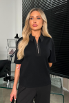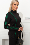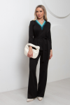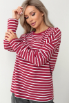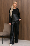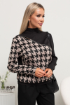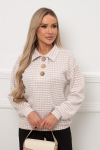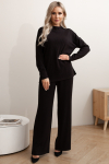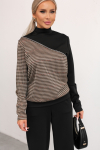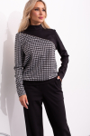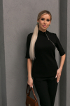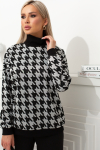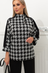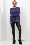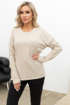 Комфортный джемпер свободного кроя из трикотажного полотна. Длинный втачной рукав со спущенным плечом присобран на манжету. Отложной воротник. Перед оформлен планкой с застежкой на петли и пуговицы. Низ на манжете.