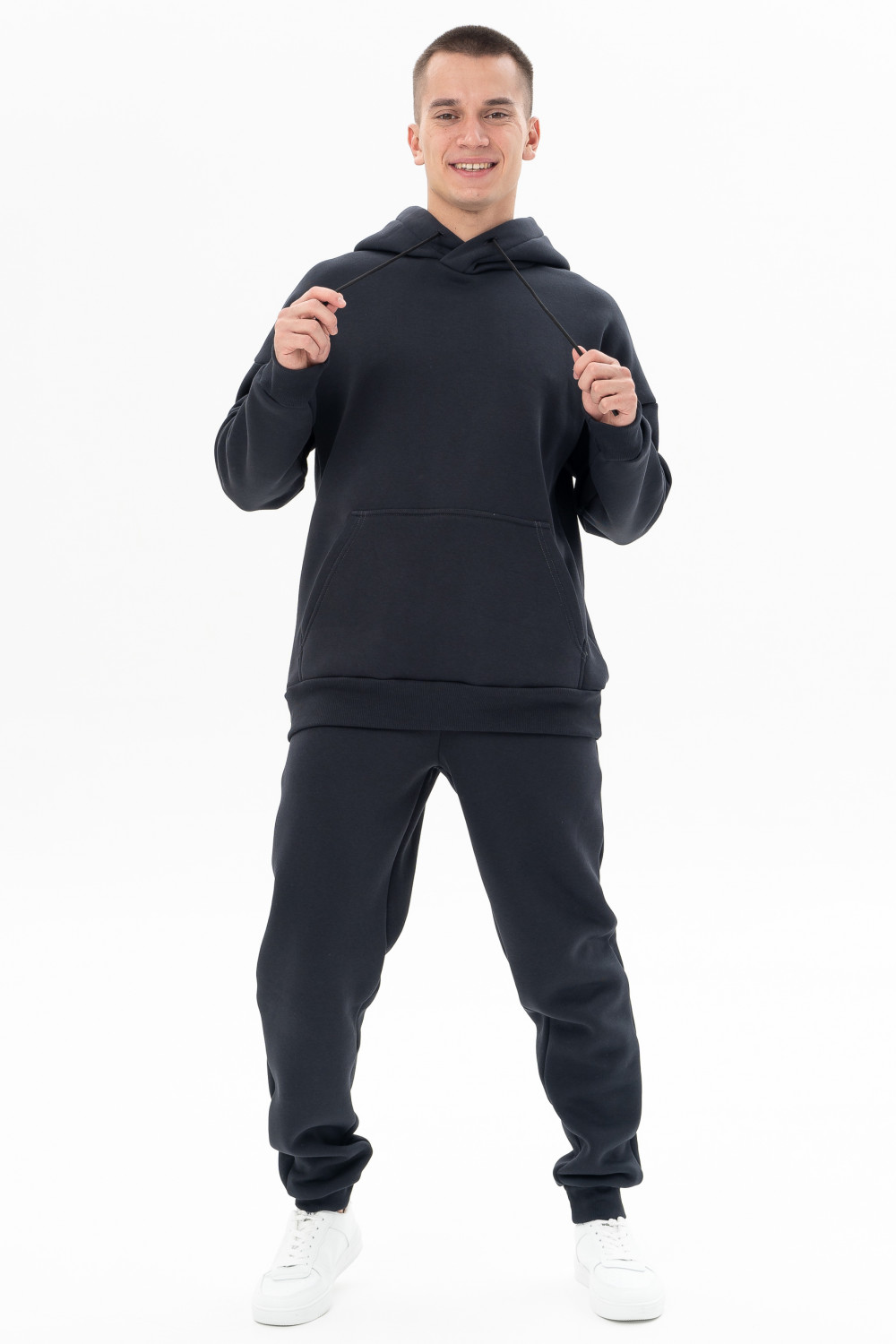 Мужское худи из мягкого хлопкового футера с начёсом имеет капюшон на регулируемом шнурке, карман «кенгуру» и широкие манжеты и пояс по низу из кашкорсе, благодаря чему модель прекрасно сохраняет тепло тела. Популярный oversize и мягкая утепленная изнанка – составляющие городского стиля и повышенного комфорта.