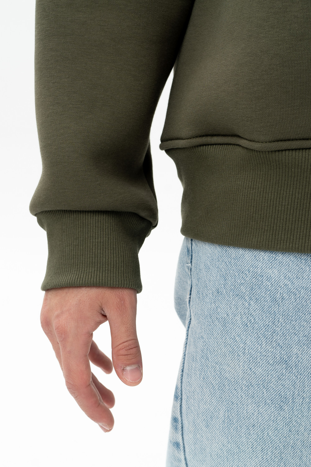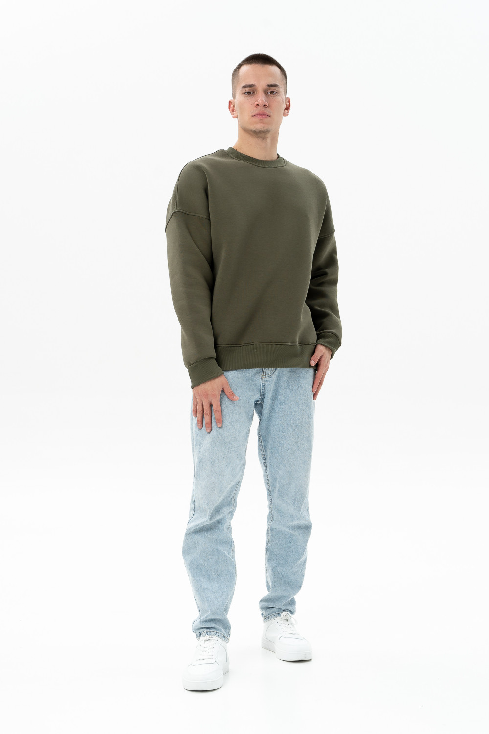 Мужской свитшот из мягкого хлопкового футера с начёсом свободного силуэта. Горловина круглой формы с планкой из контрастного трикотажа как на свитере. Плечо спущенное с объемными рукавами на манжете. Все эти детали делают эту модель особенной привлекательной, выглядит очень эффектно и стильно.