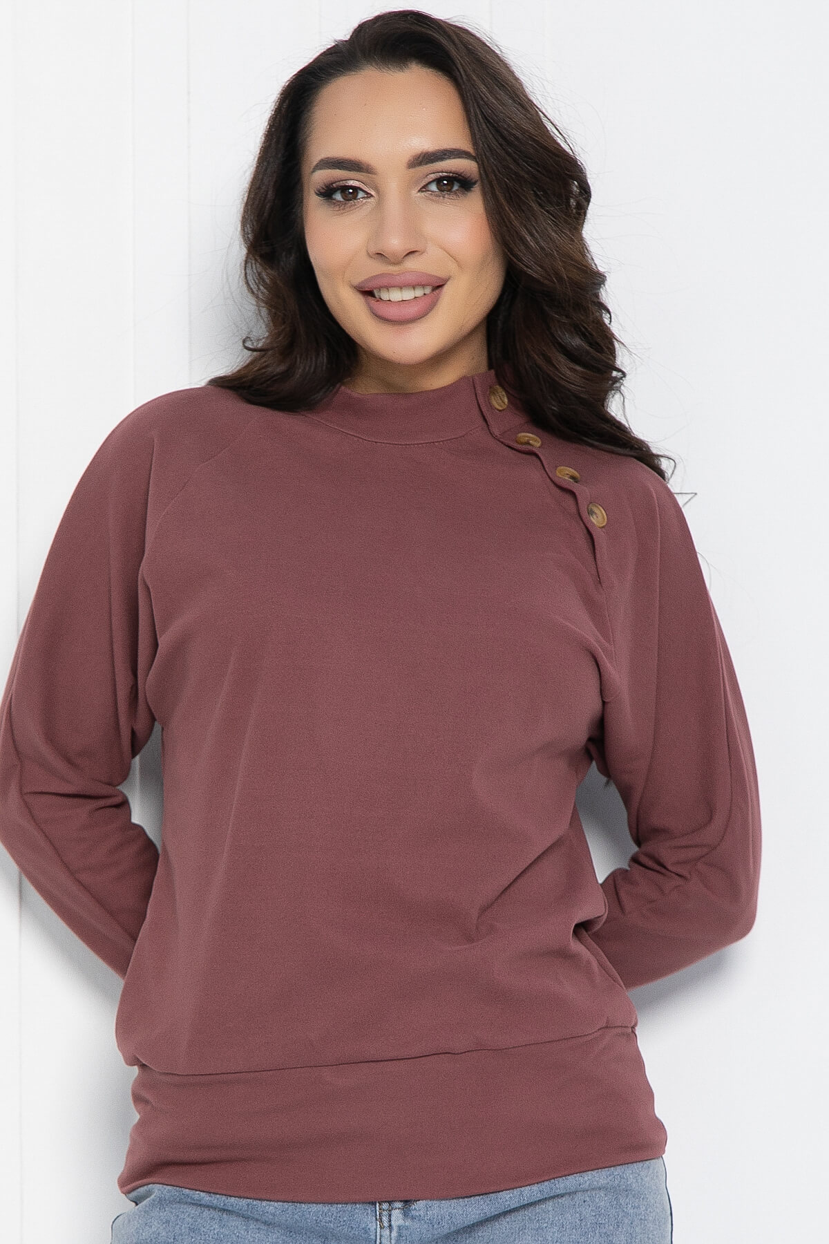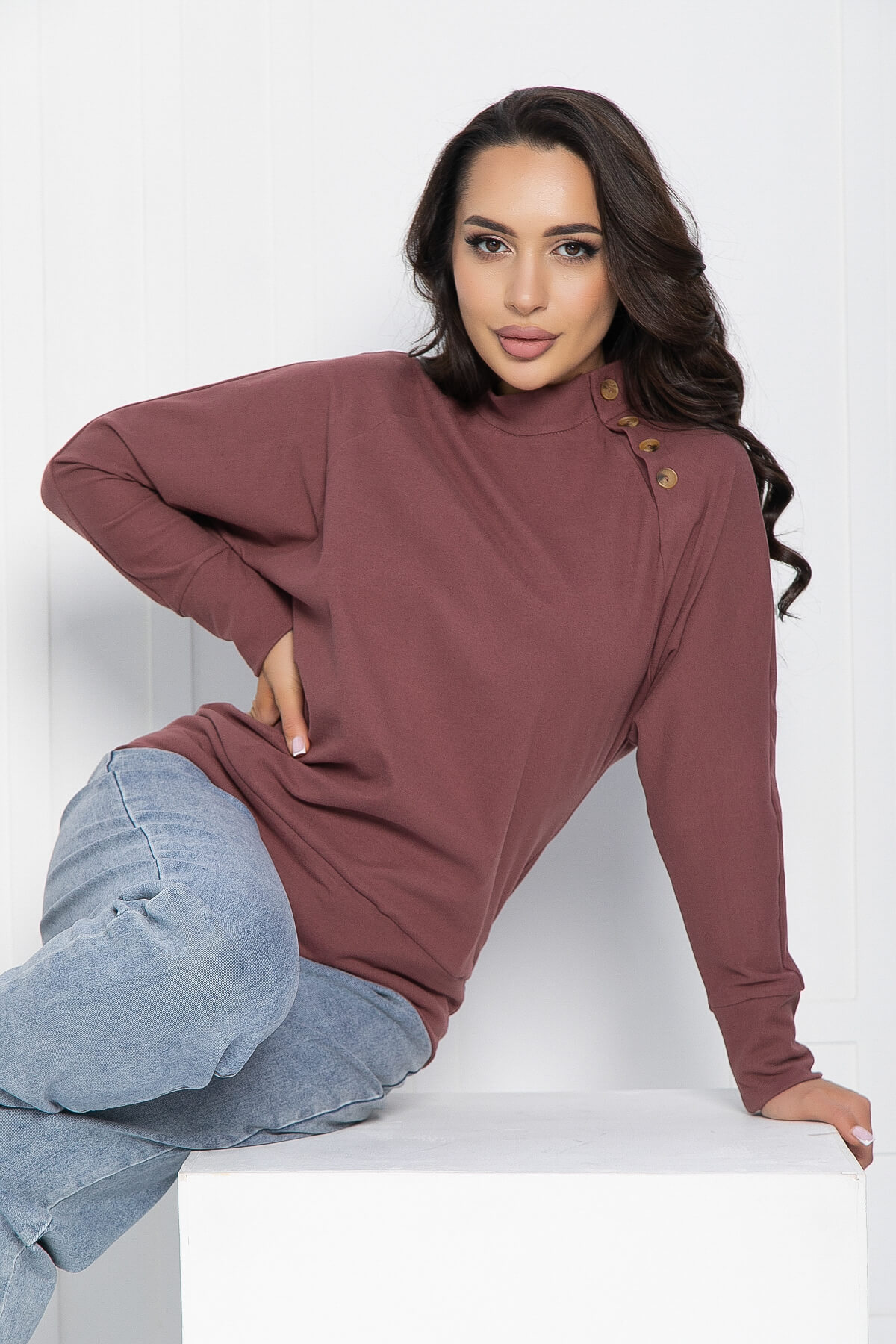 Джемпер в ягодном оттенке с пуговицами на передней части — это великолепное дополнение к вашему гардеробу. Он выполнен в свободном силуэте, рукава по типу  «летучая мышь» и идеально подходит для создания повседневных образов.