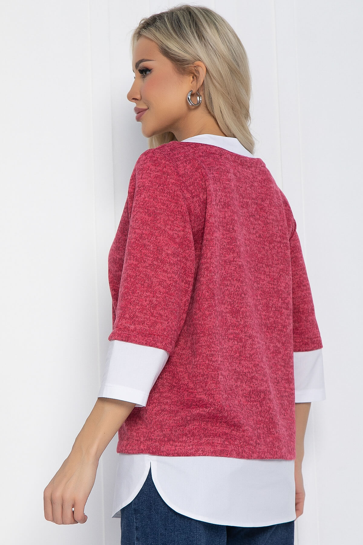 Джемпер из мягкого трикотажа украсит ваш деловой образ и сделает его красивым и комфортным. Сочетание двух видов ткани создаёт эффект многослойного образа.