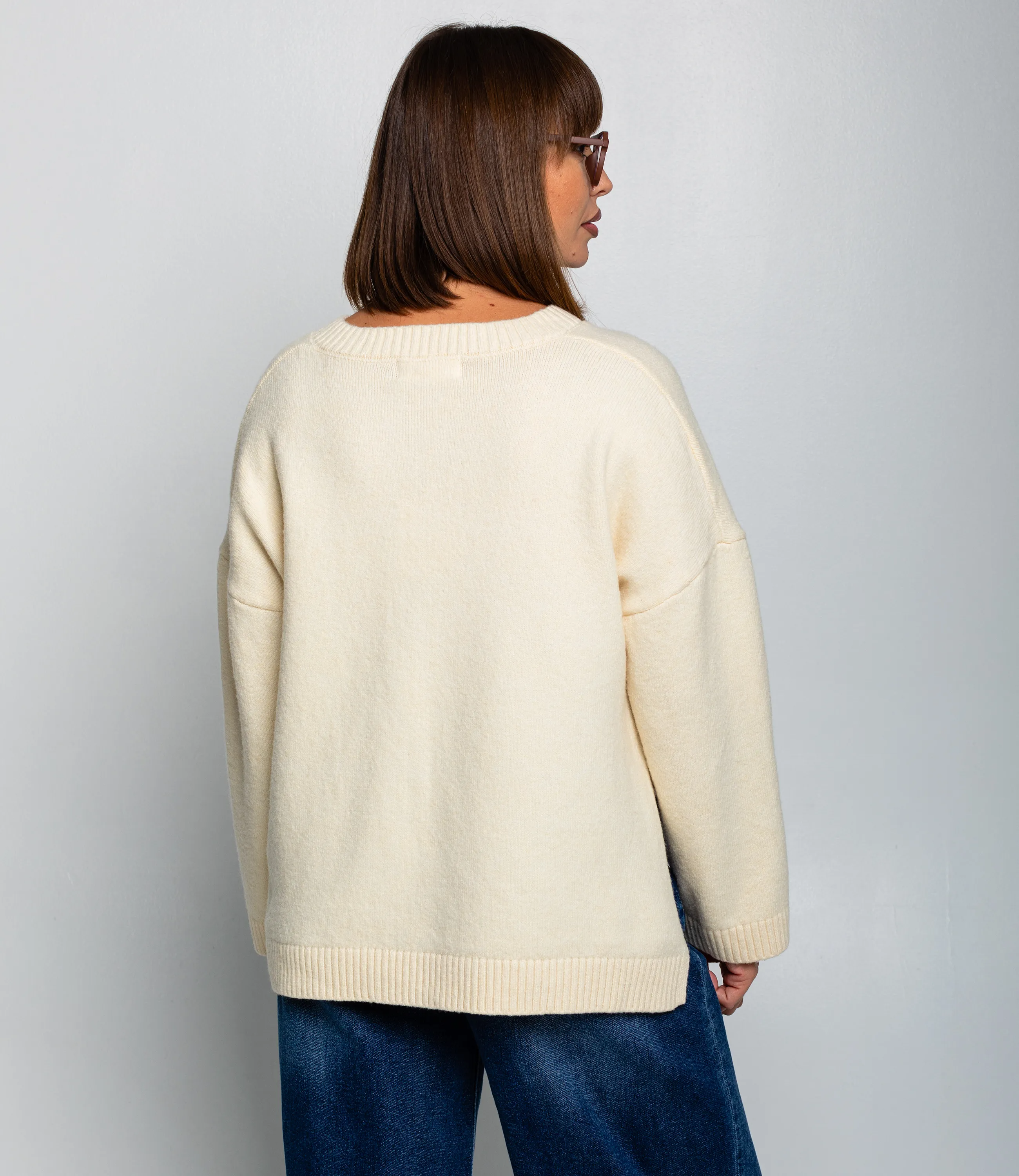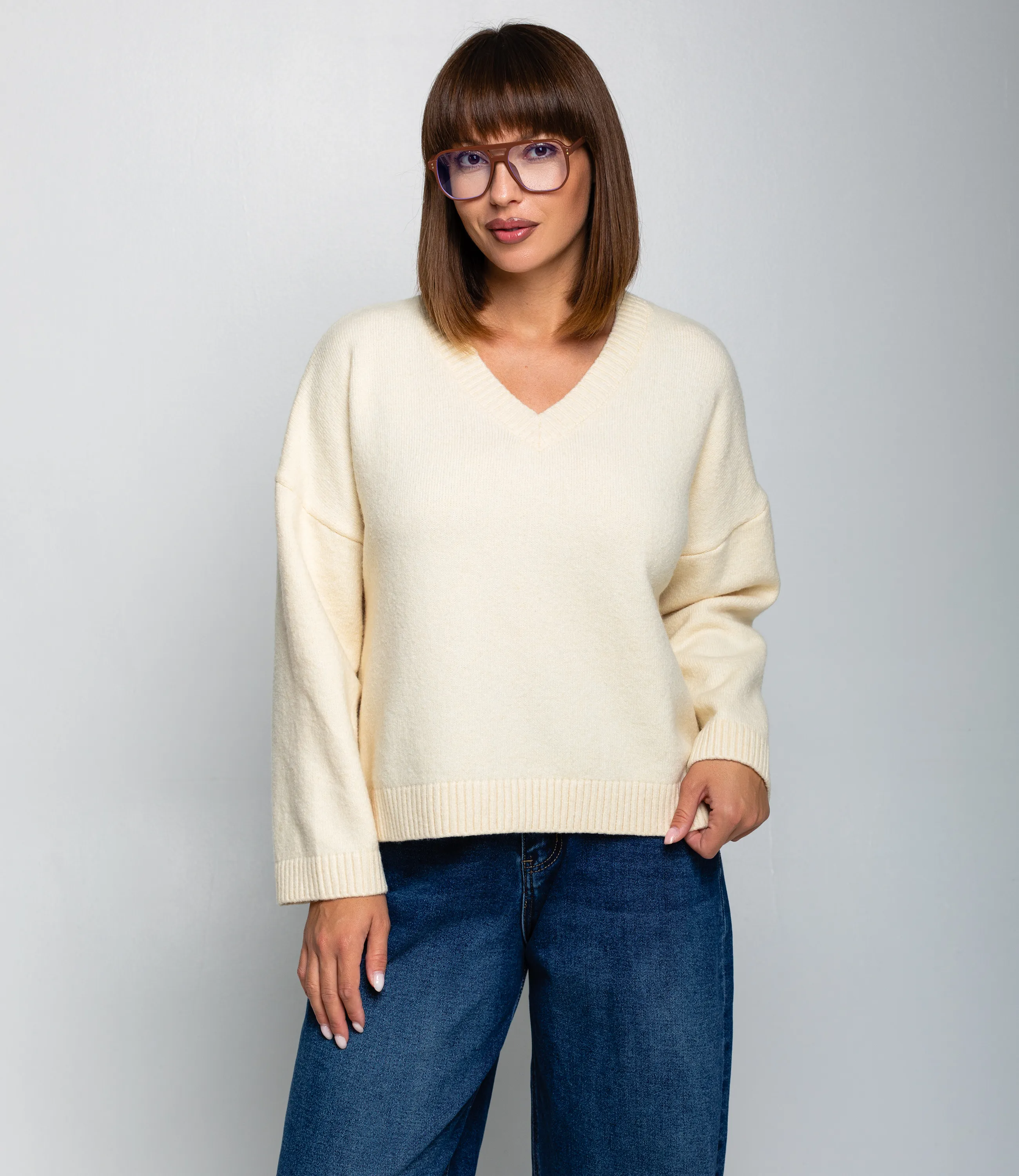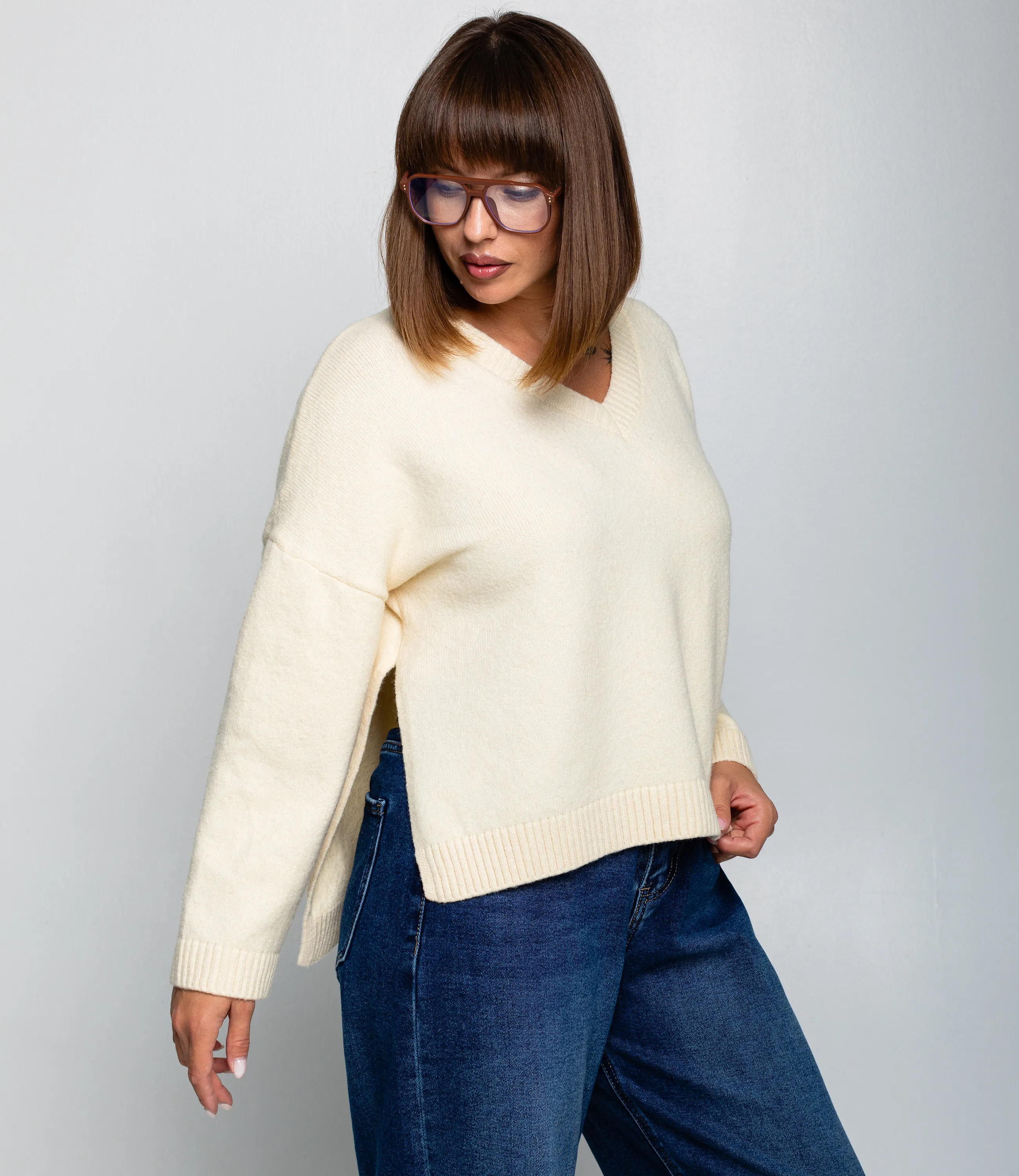Джемпер — это элегантный и стильный элемент гардероба, который подчеркивает уникальность каждой женщины. Джемпер свободного, слегка оверсайз‑кроя с укороченной длиной и боковыми разрезами средней высоты, что придаёт лёгкую асимметрию и удобство движений. плечи со спущенной линией для расслабленного силуэта, длинные прямые рукава с плотными вязанными манжетами. V‑образный вырез средней глубины с аккуратно выполненной вязаной планкой; низ вязаной резинкой средней ширины, обеспечивающей форму. Ткань — мягкая среднеплотная вязаная структура с равномерной, слегка пушистой поверхностью без выраженного узора, дающая лёгкий объём и мягкую драпировкой. Состав ткани — 70% акрил, 20% полиэстер и 10% шерсть. Для удобства покупателей на странице доступна таблица размеров, что поможет им легко найти идеальный размер. Предложенная цена является доступной, а значит, ваши клиентки смогут с легкостью добавить этот стильный элемент в свой гардероб. Не упустите шанс предложить своим покупателям этот превосходный джемпер, который позволят им чувствовать себя уверенно и элегантно в любой обстановке! Подарите вашим клиентам возможность выделиться и продемонстрировать свой уникальный стиль с этим удивительным изделием!