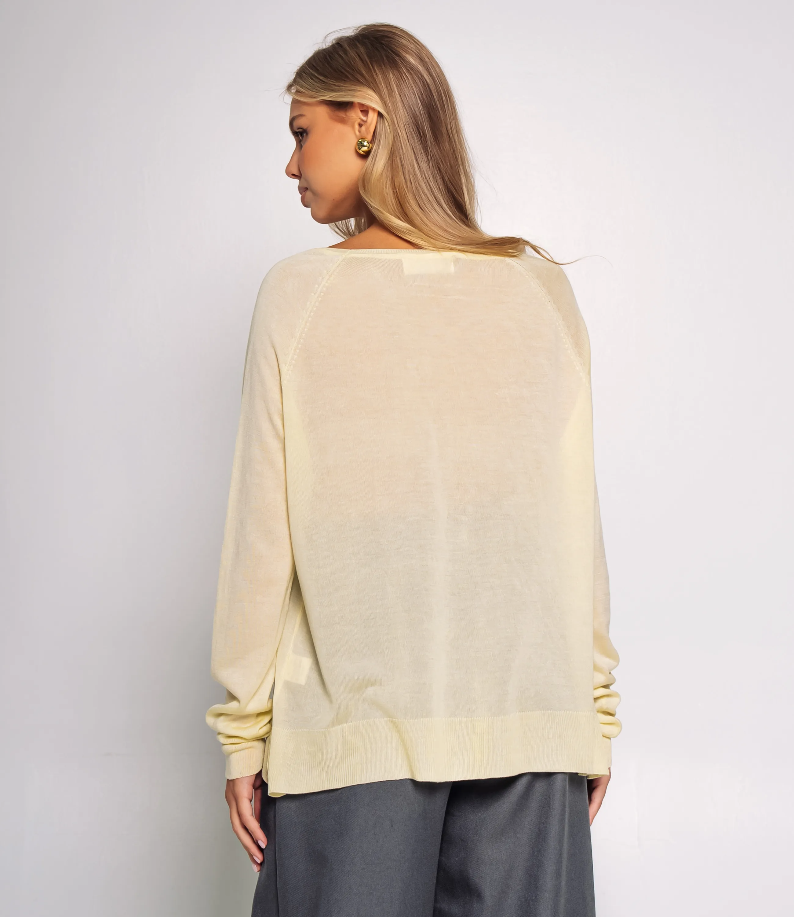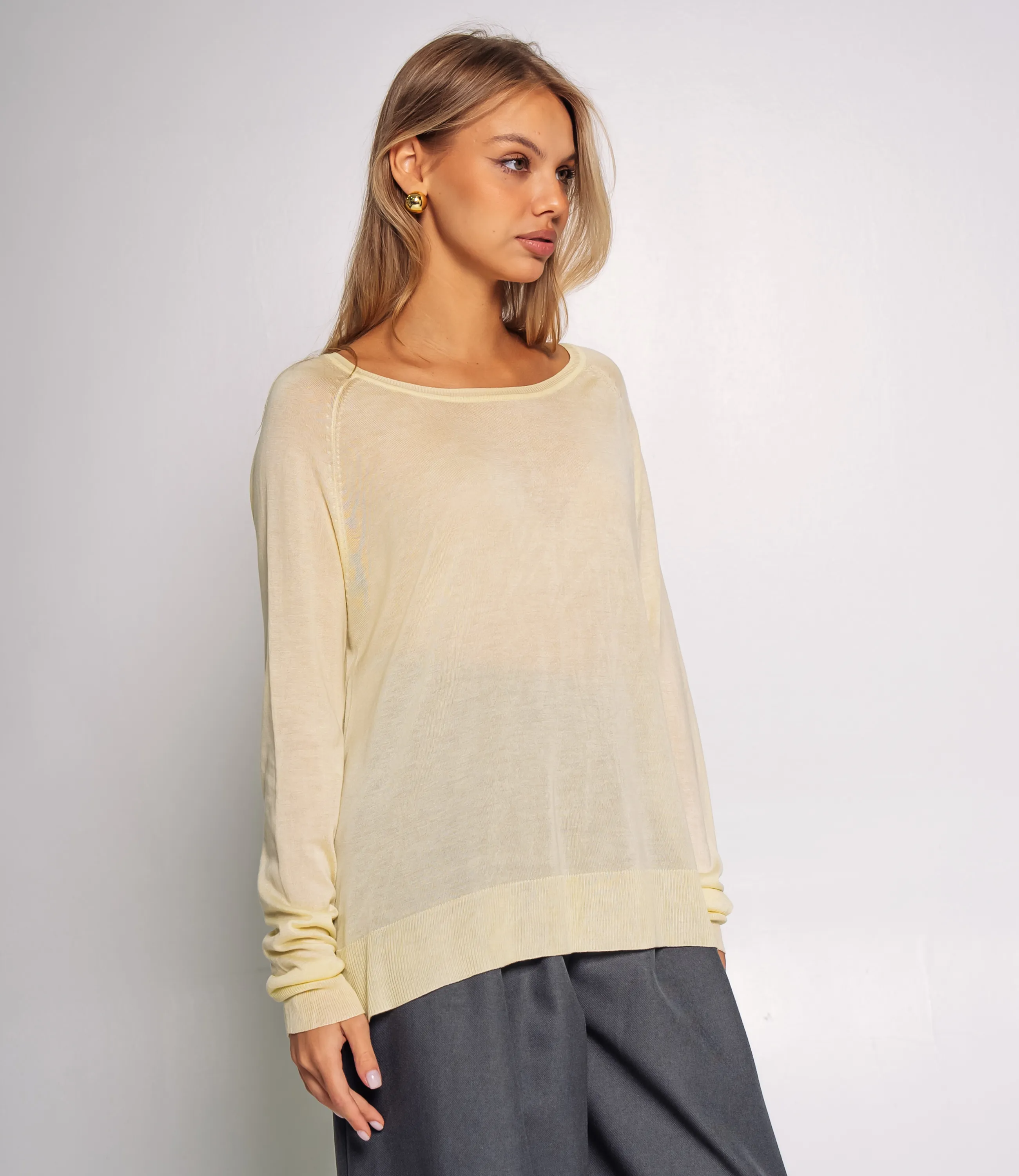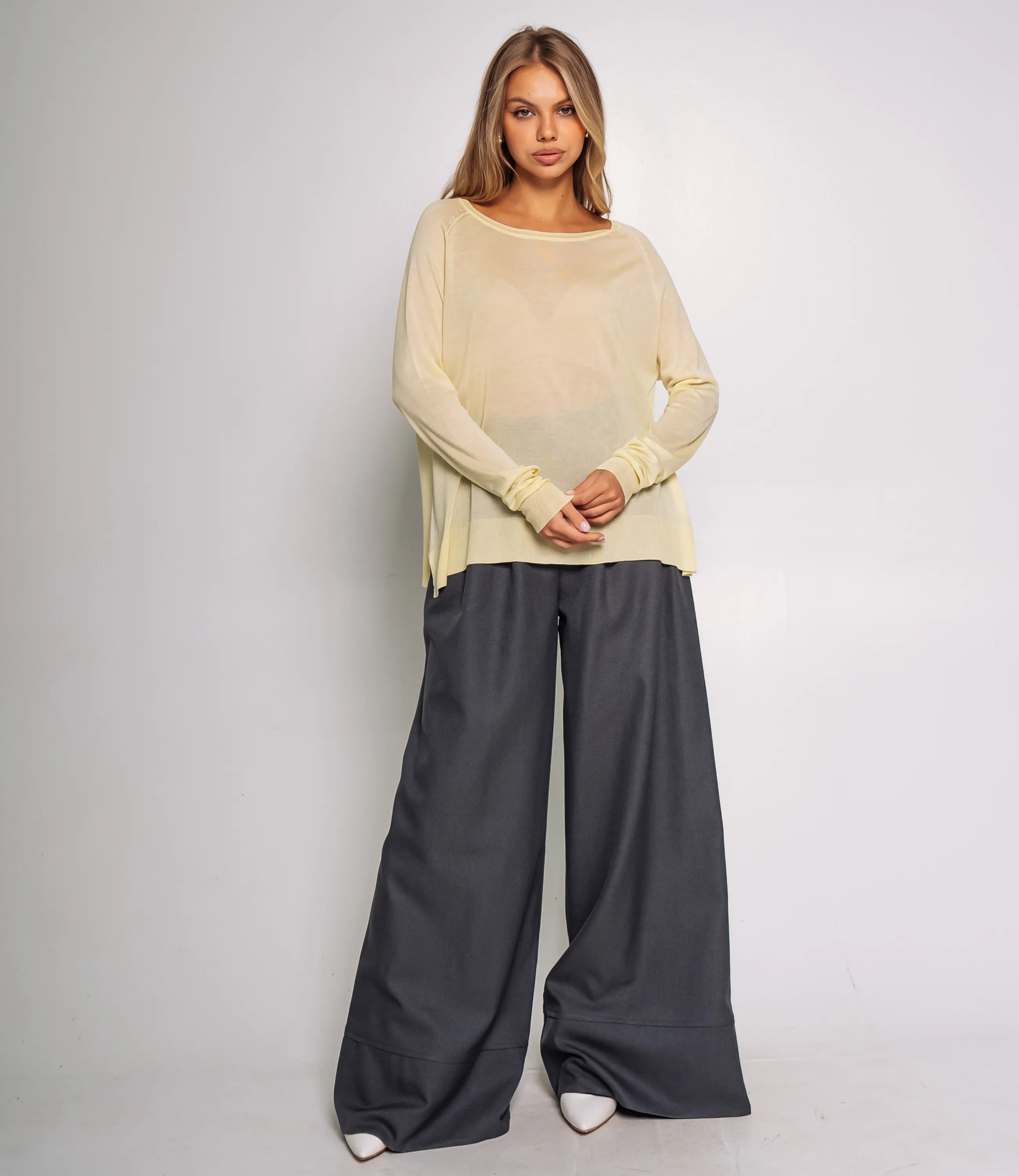 Джемпер — это универсальная и в то же время выразительная вещь гардероба, которая подчёркивает женственность и индивидуальность покупательницы; эта модель из смесовой ткани 50% акрил, 50% вискоза выполнена в свободном чуть удлинённом крое с круглым широким вырезом и длинными рукавами с мягкой сборкой у манжет, что придаёт изделию лёгкую непринуждённость и уютную фактуру; тонкий, лёгкий и мягкий трикотаж подчёркивает расслабленный комфортный стиль, а отсутствие лишних декоративных деталей делает джемпер максимально универсальным и легко комбинируемым с различными элементами коллекции; такая модель выгодно смотрится и на вешалке, и в стопке, привлекает покупателей, ищущих базовые, но стильные решения, и способствует стабильному спросу в сегменте casual и smart casual; цвета соответствуют фото на сайте, размеры указаны в таблице, а грамотная выкладка и разнообразие оттенков помогут быстро увеличить оборот и средний чек вашей розницы. Рост модели 168 см., 89-63-90