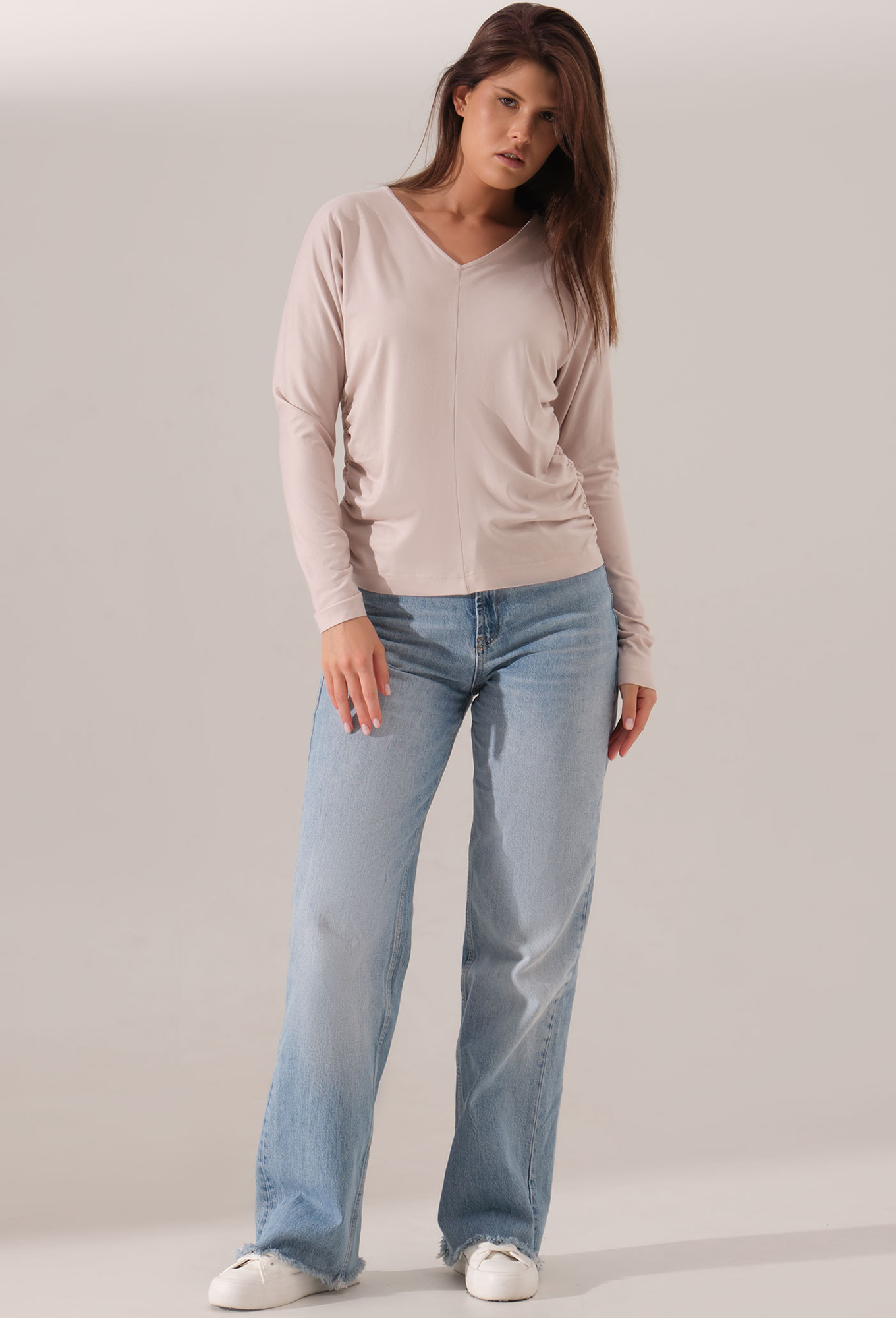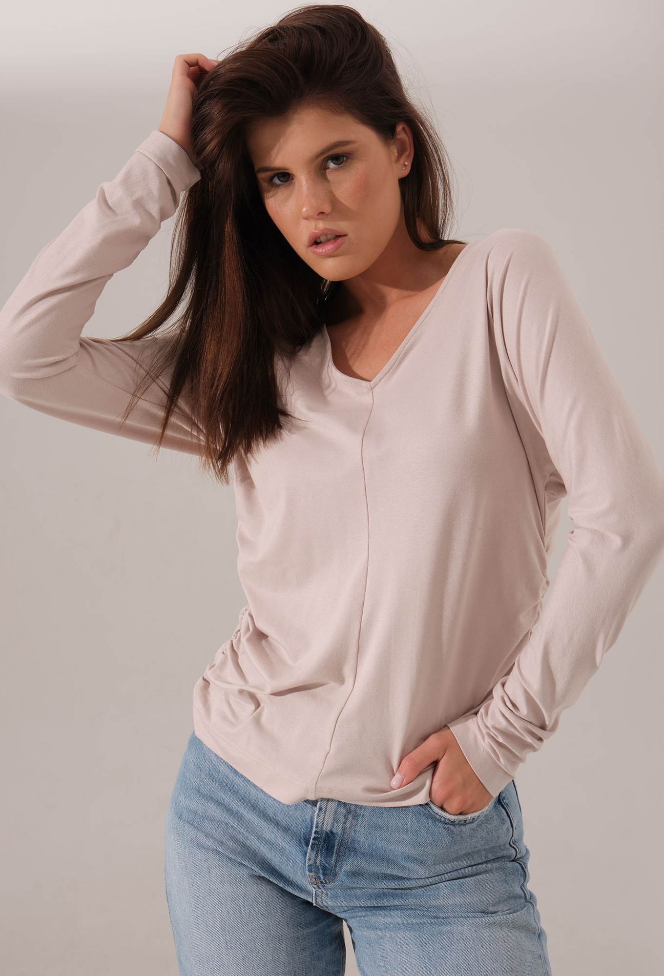 Модель: Панда 162640 пудра Рост: ..показать164 см (девушка на фото ростом 170см) Сезон: Круглогодичный Тип ткани: Вискоза 95%, эластан 5%Джемпер женский – универсальное решение для базового гардероба. Джемпер в V-образным вырезом. По бокам вставлена резинка.