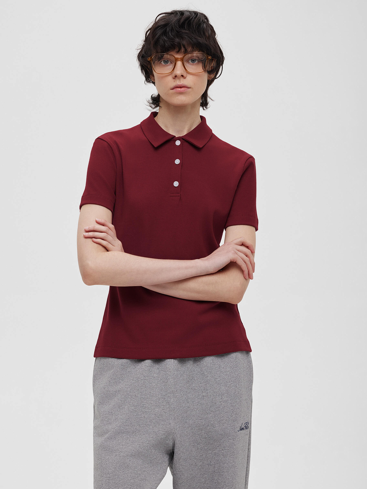 Джемпер поло из трикотажа 0204, бордовый