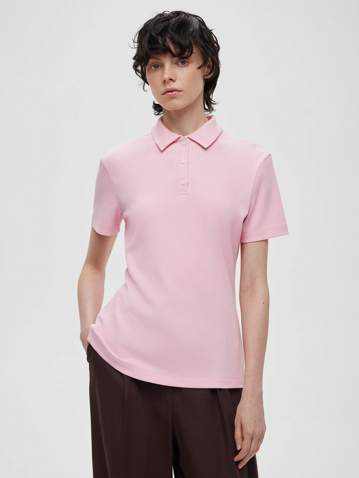 Джемпер поло из трикотажа 0204, светло-розовый