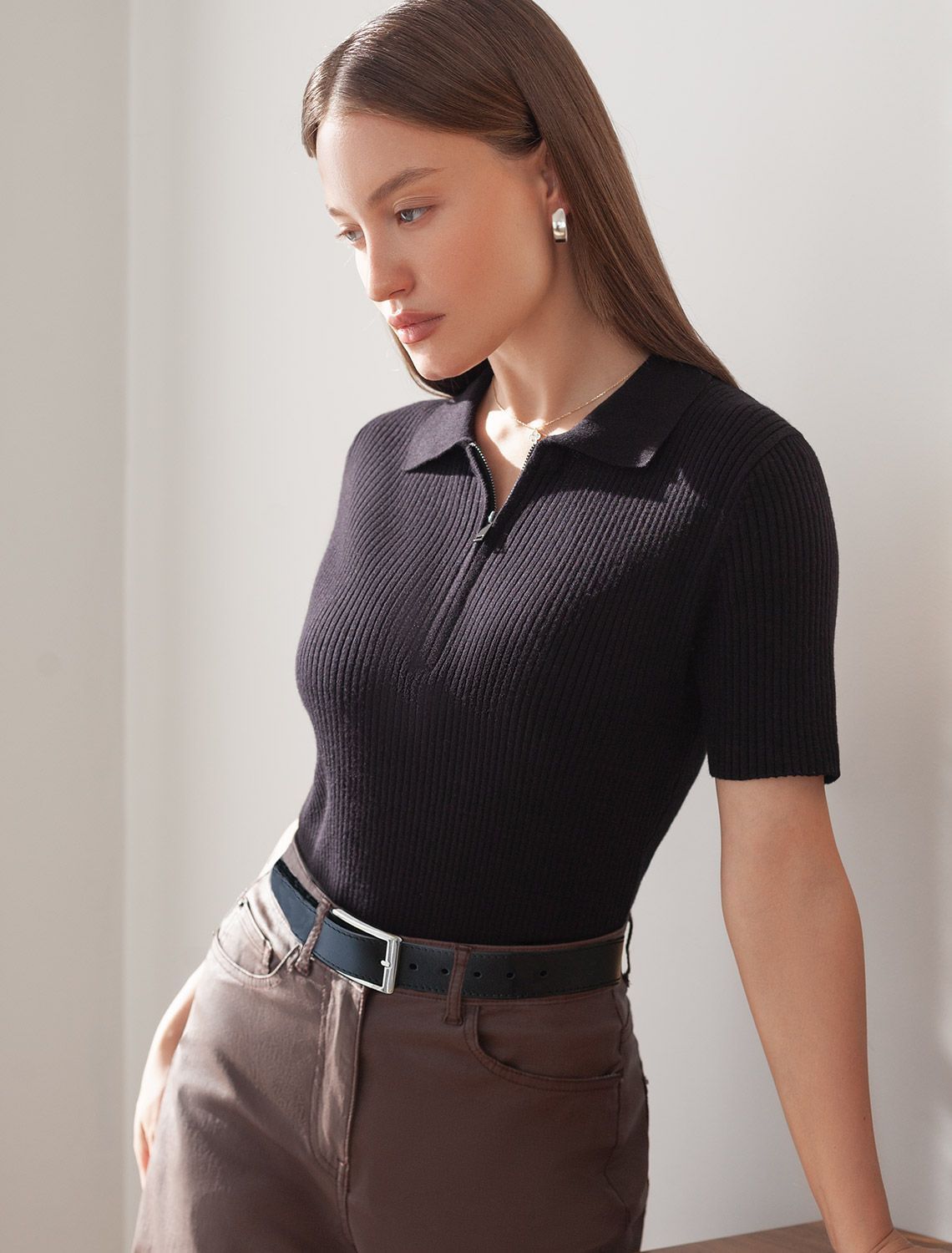 Джемпер-поло тонкой вязки выполнен из хлопка с добавлением кашемира. Модель с воротом как у поло дополнена застежкой на молнию и металлическим логотипом бренда. Мягкая и очень приятная пряжа в рубчик совершенно не колется, сохраняет тепло при этом не перегревая, гарантируя безупречный комфорт.