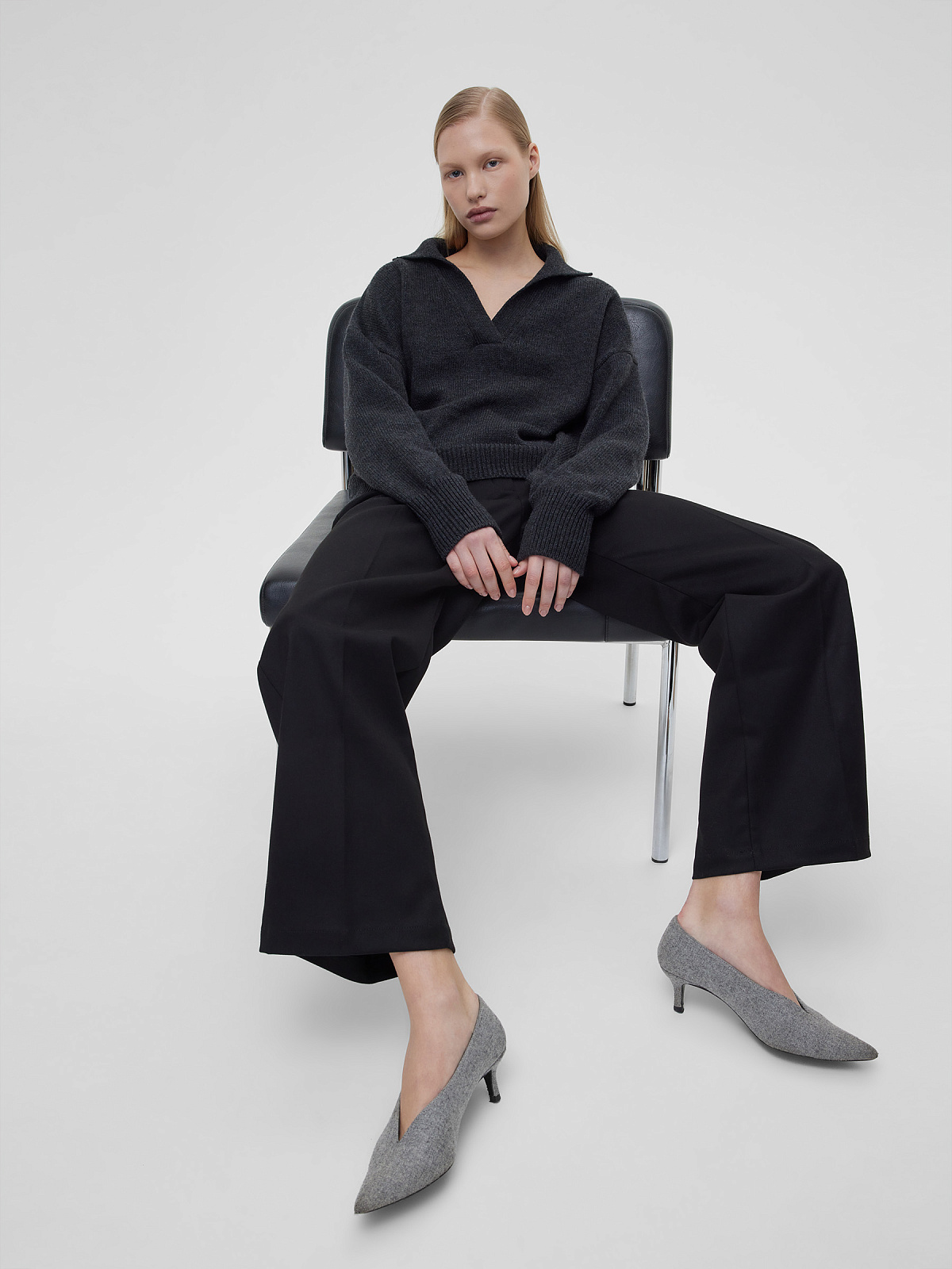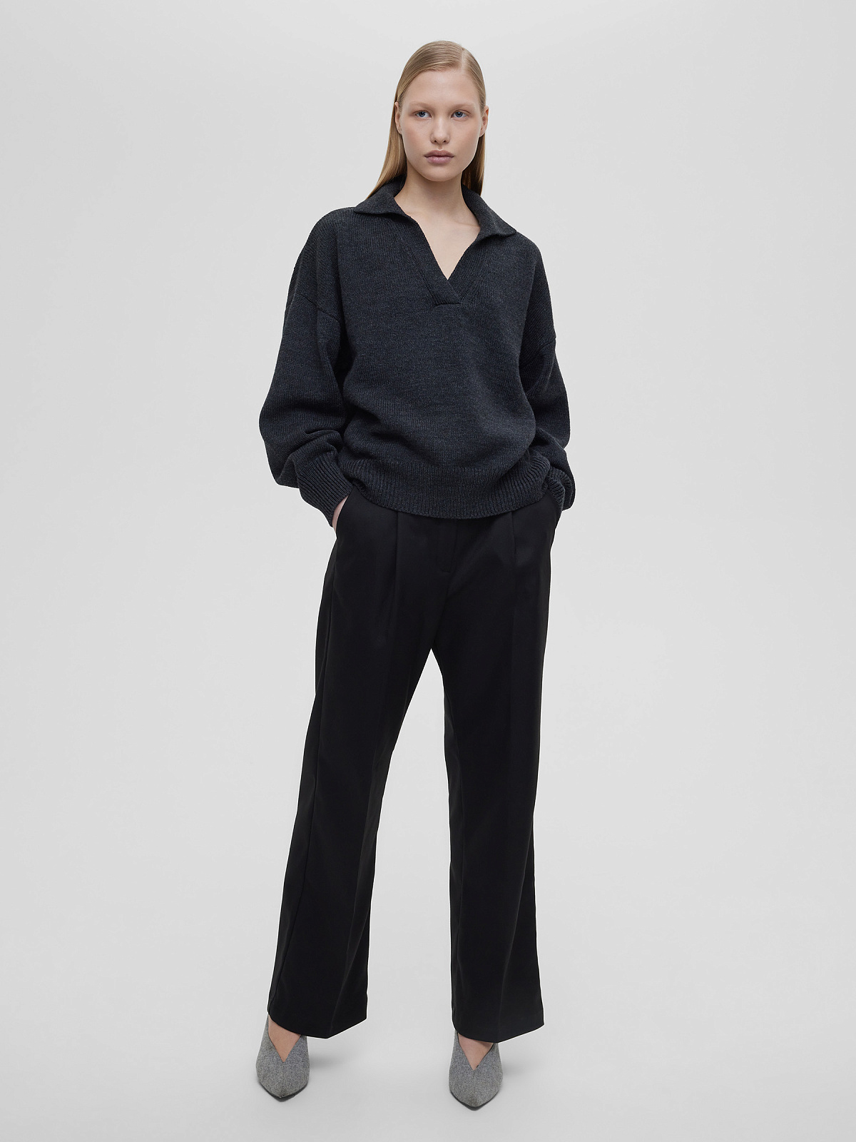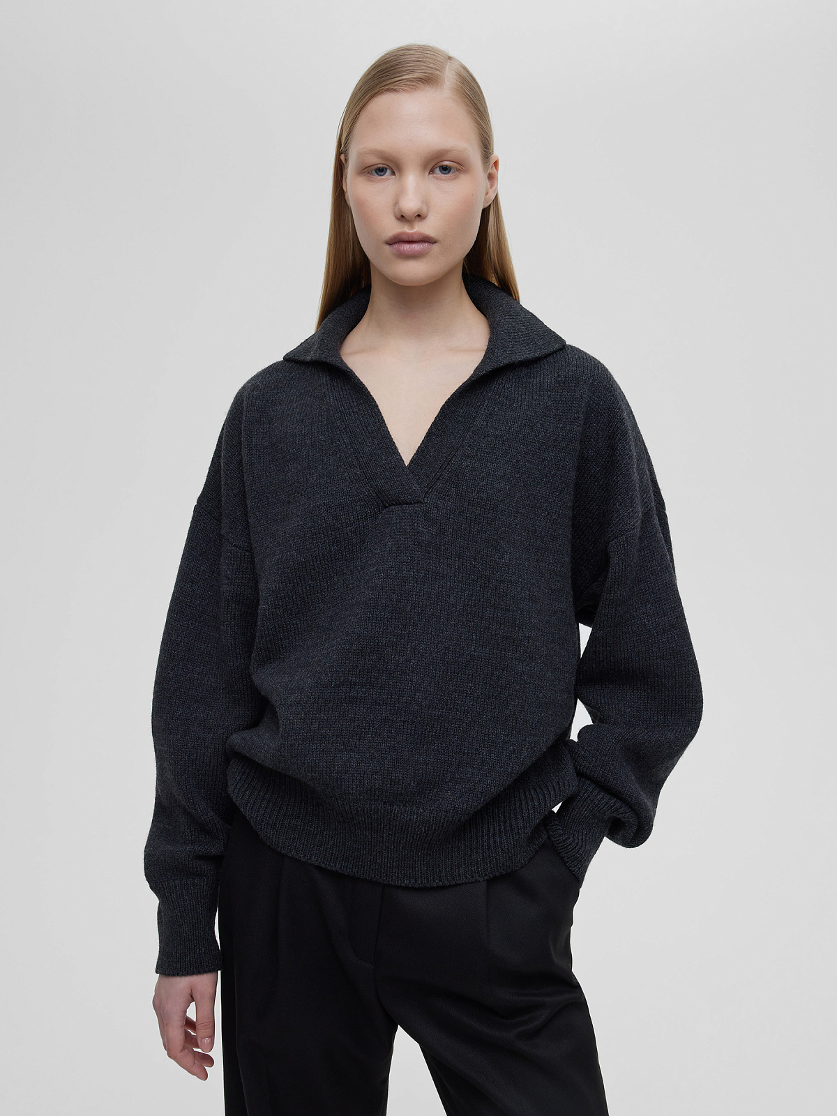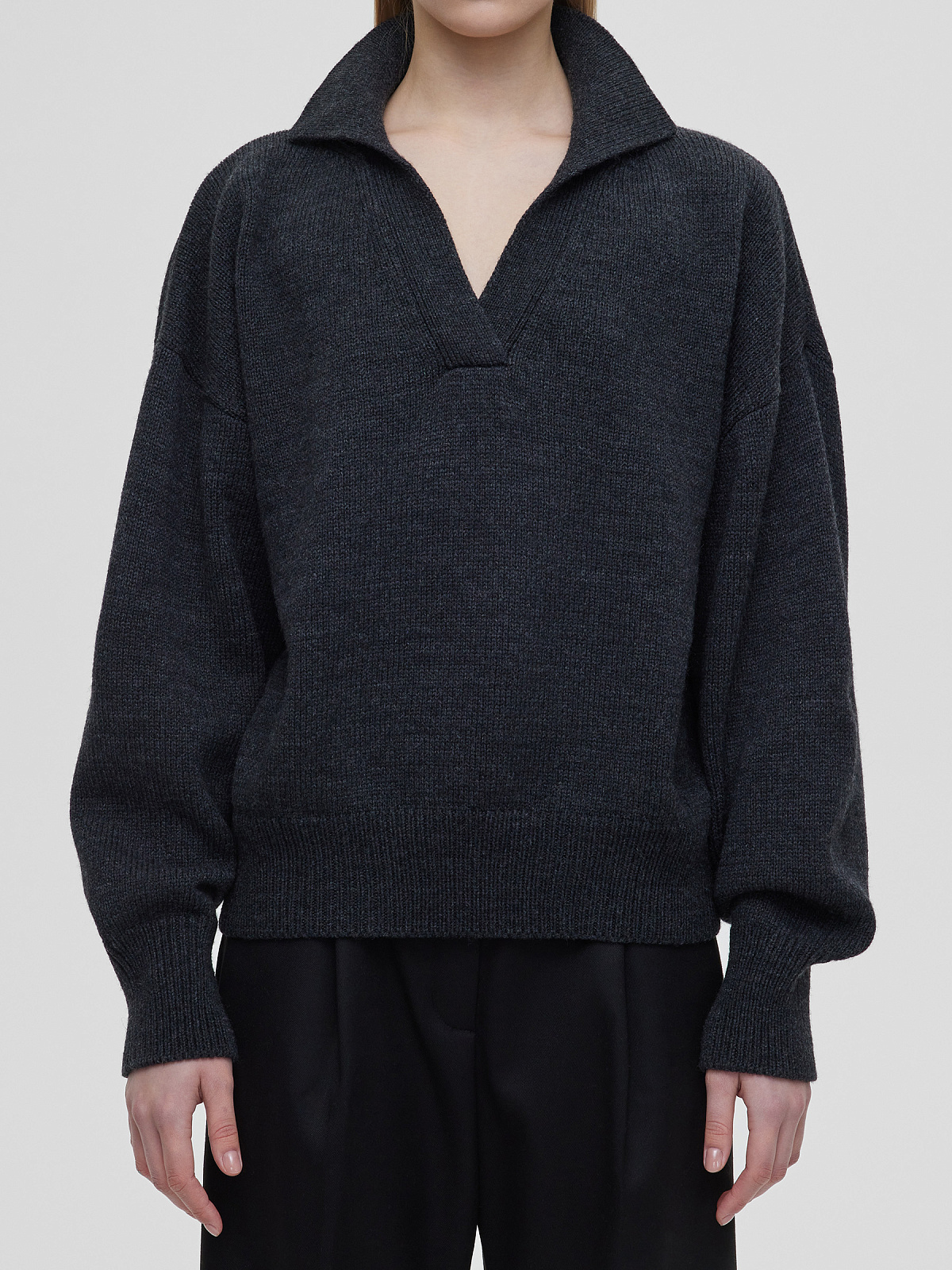 Джемпер-поло свободного кроя, антрацит