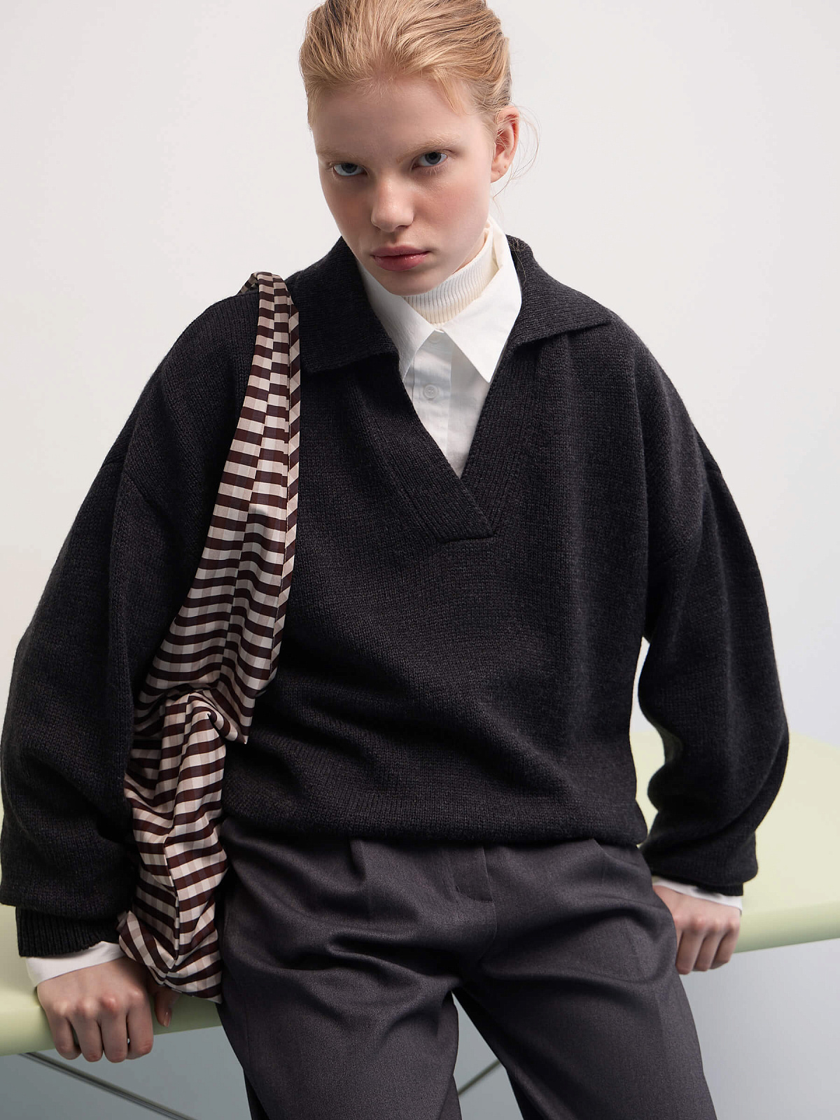 Модель легко встраивается в повседневный гардероб: её удобно сочетать с юбками и брюками, использовать в многослойных образах с футболкой или носить как самостоятельный акцент. Джемпер-поло можно использовать как в образах для офиса, так и на прогулках или дома — в моменты, когда максимально важны комфорт и спокойствие.