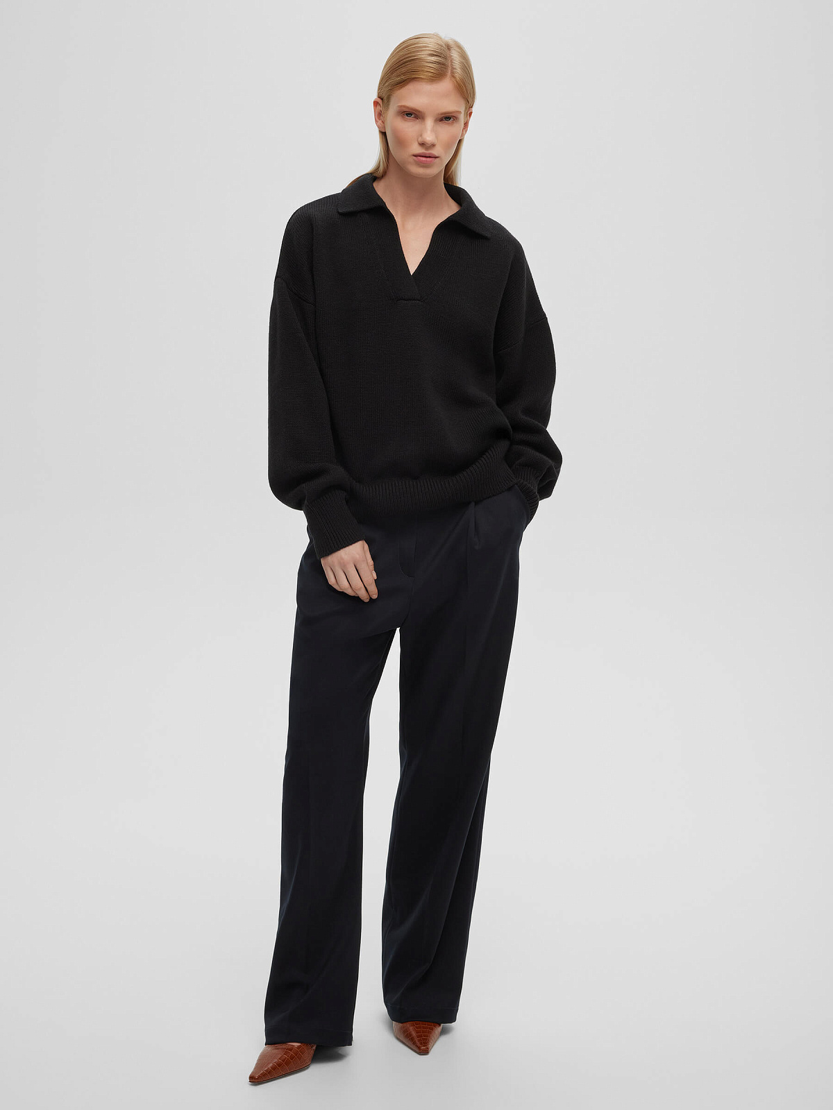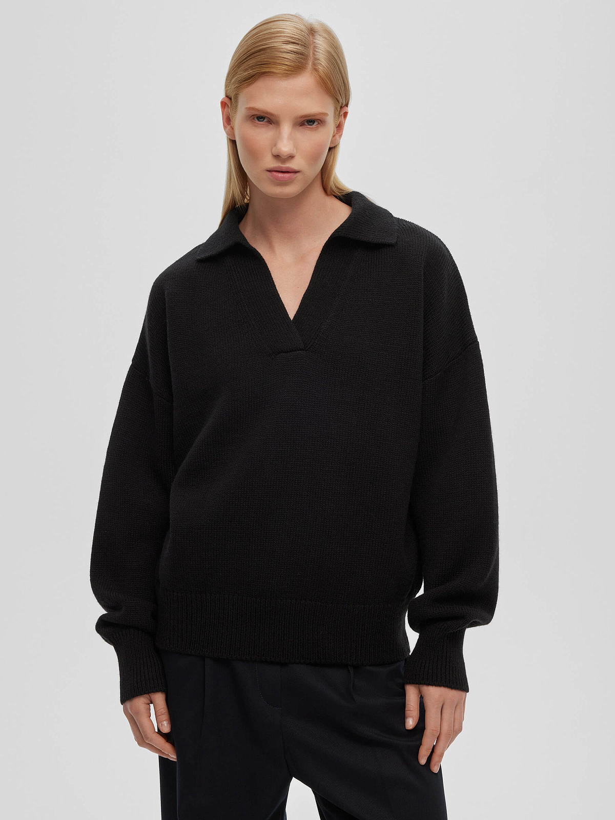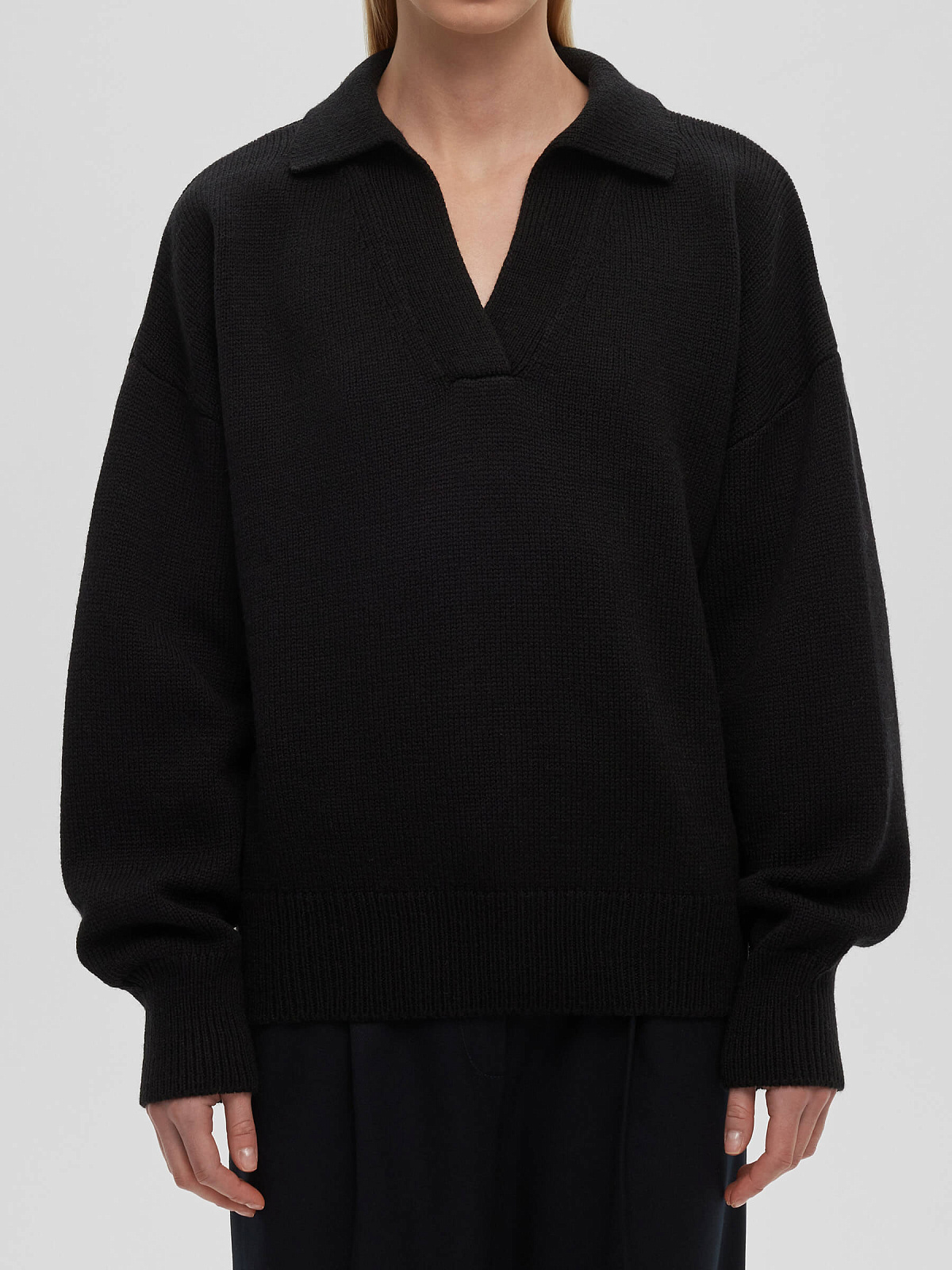 Джемпер-поло свободного кроя, черный