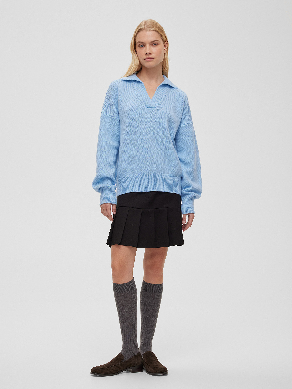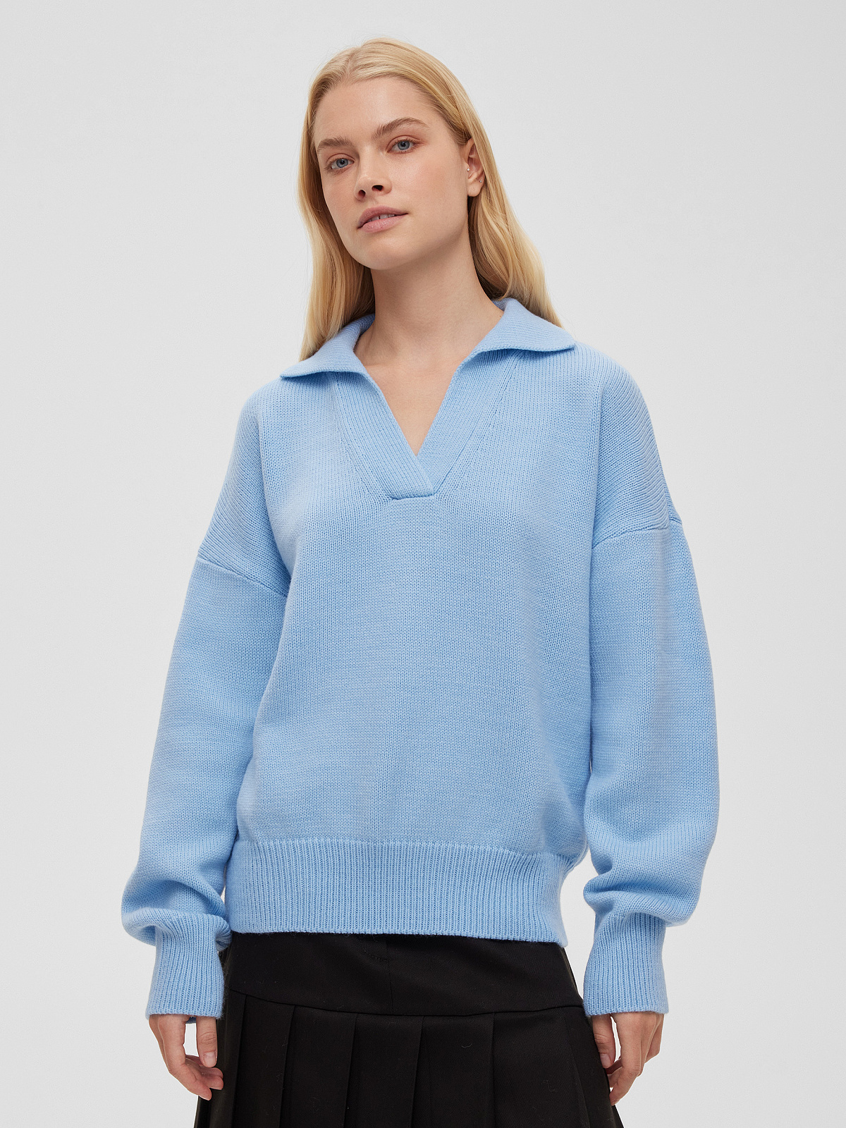 Джемпер-поло свободного кроя, голубой