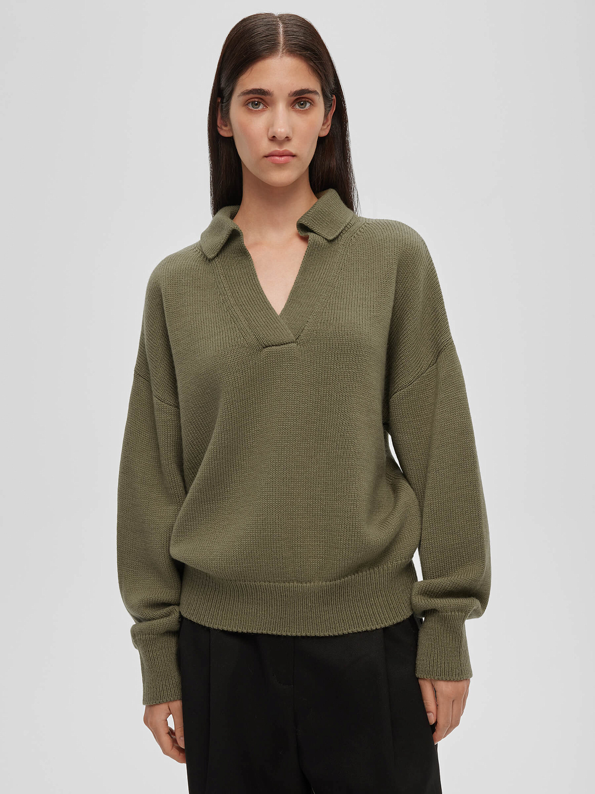 Джемпер-поло свободного кроя, светлый хаки
