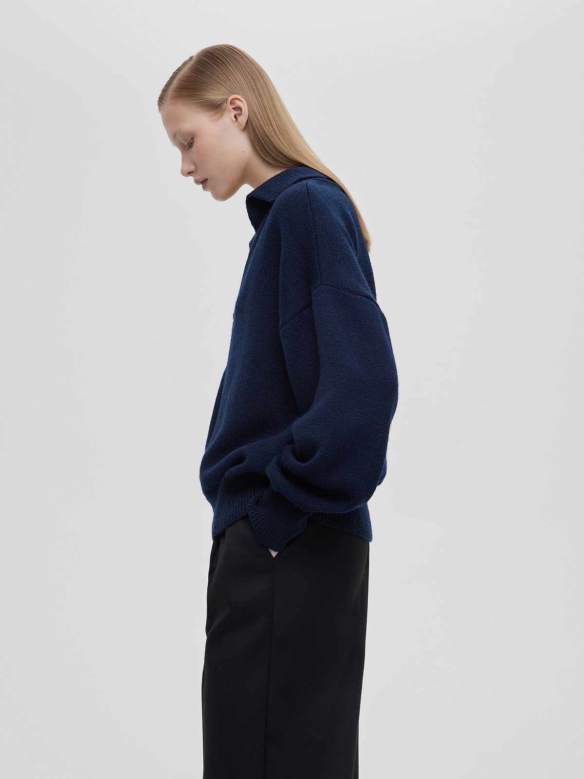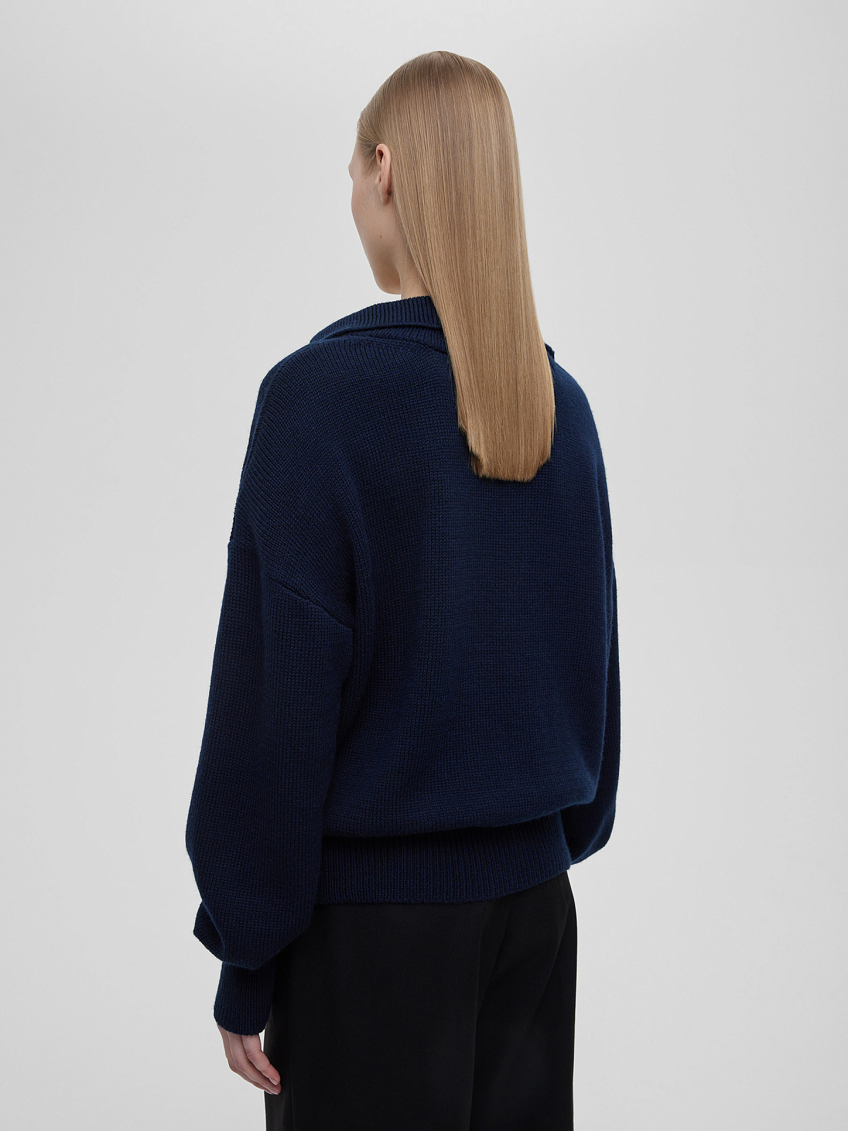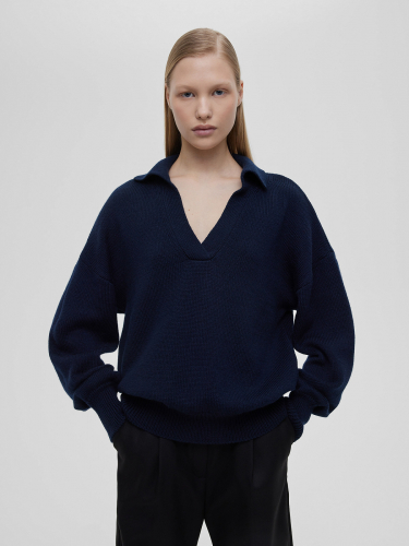 Джемпер-поло свободного кроя, темно-синий