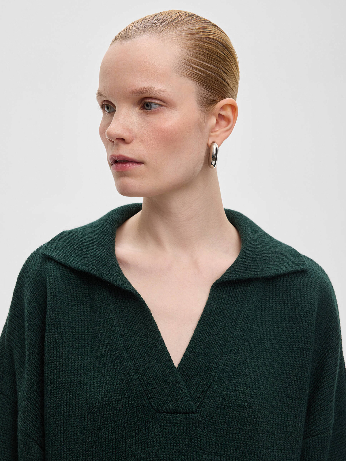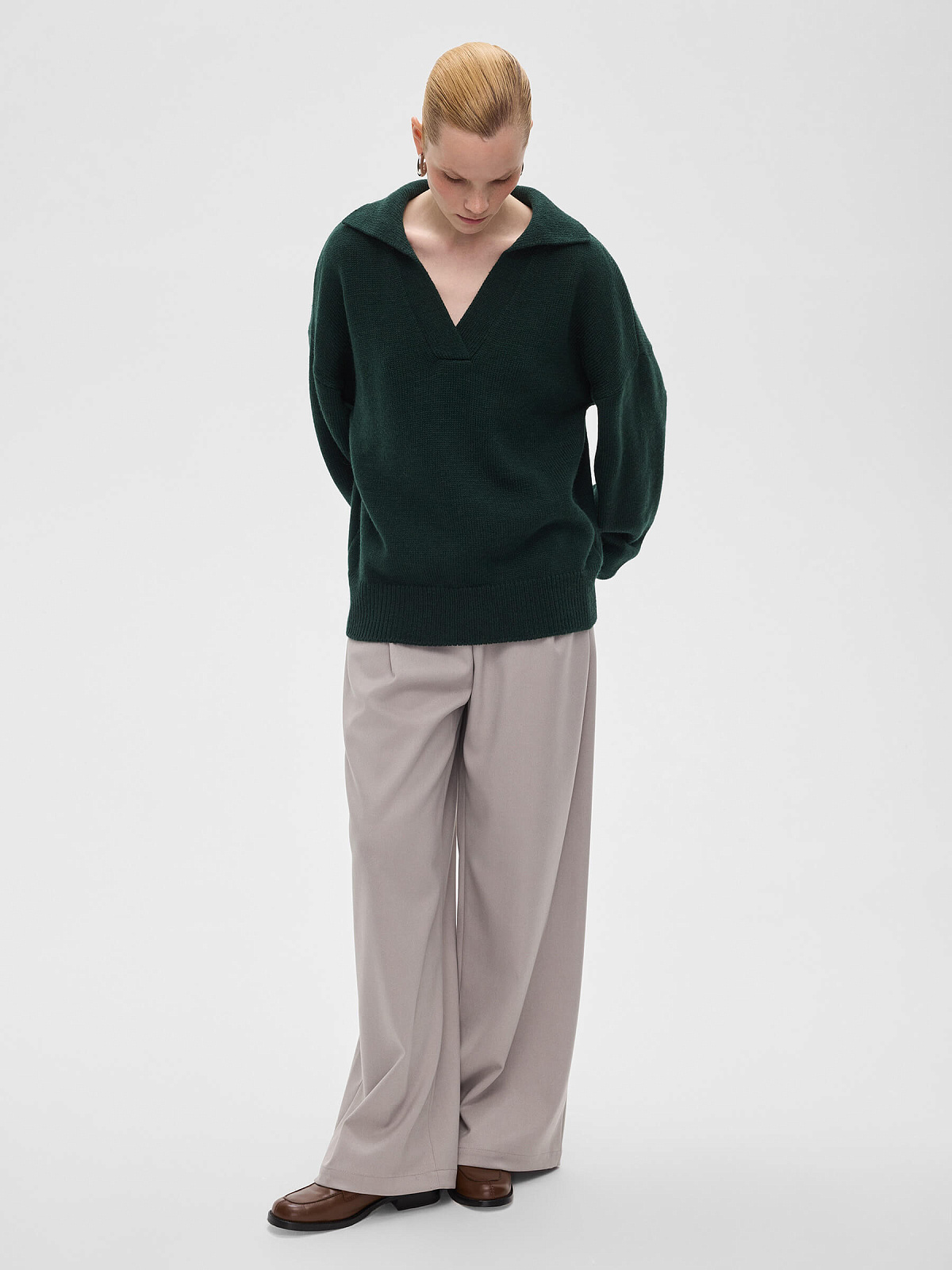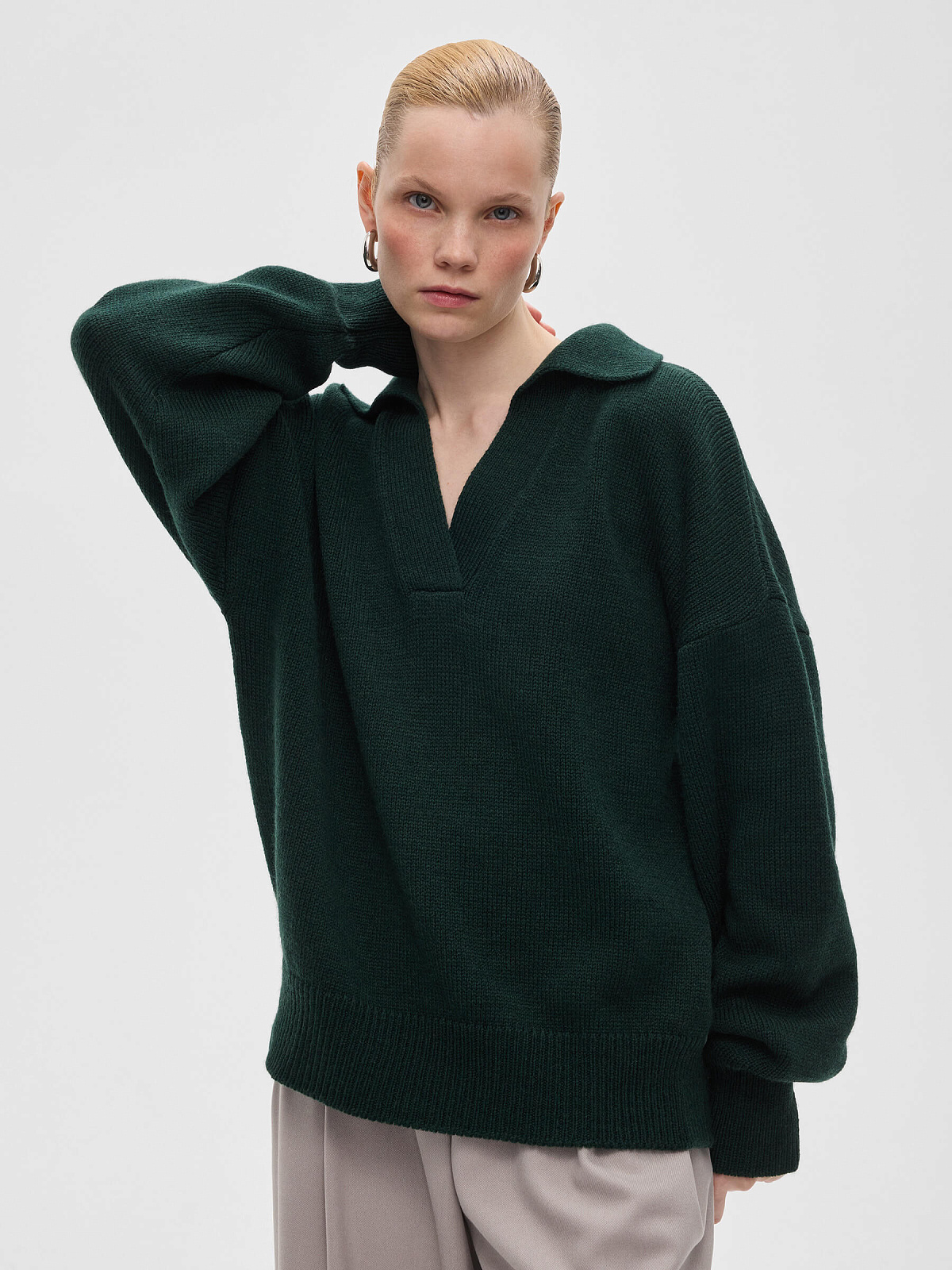 Джемпер-поло свободного кроя, темно-зеленый