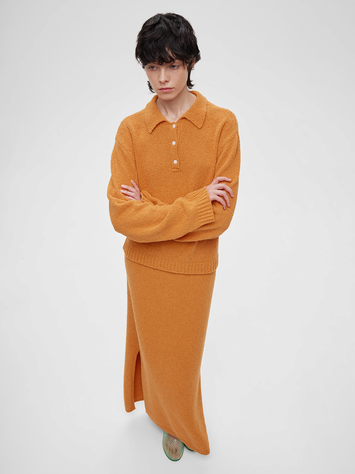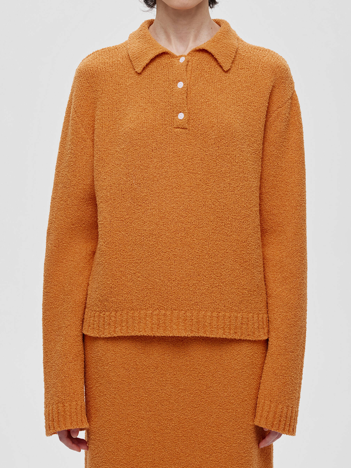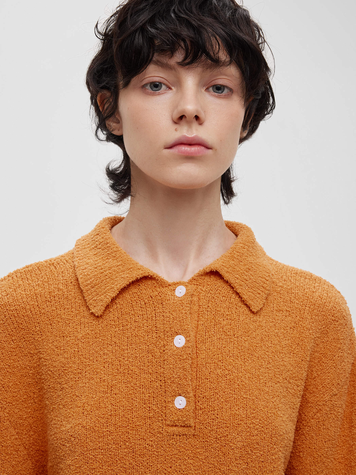 Джемпер регби с отложным воротником свободного кроя. Изготовлен из фактурной пряжи на хлопковой основе с эффектом букле.