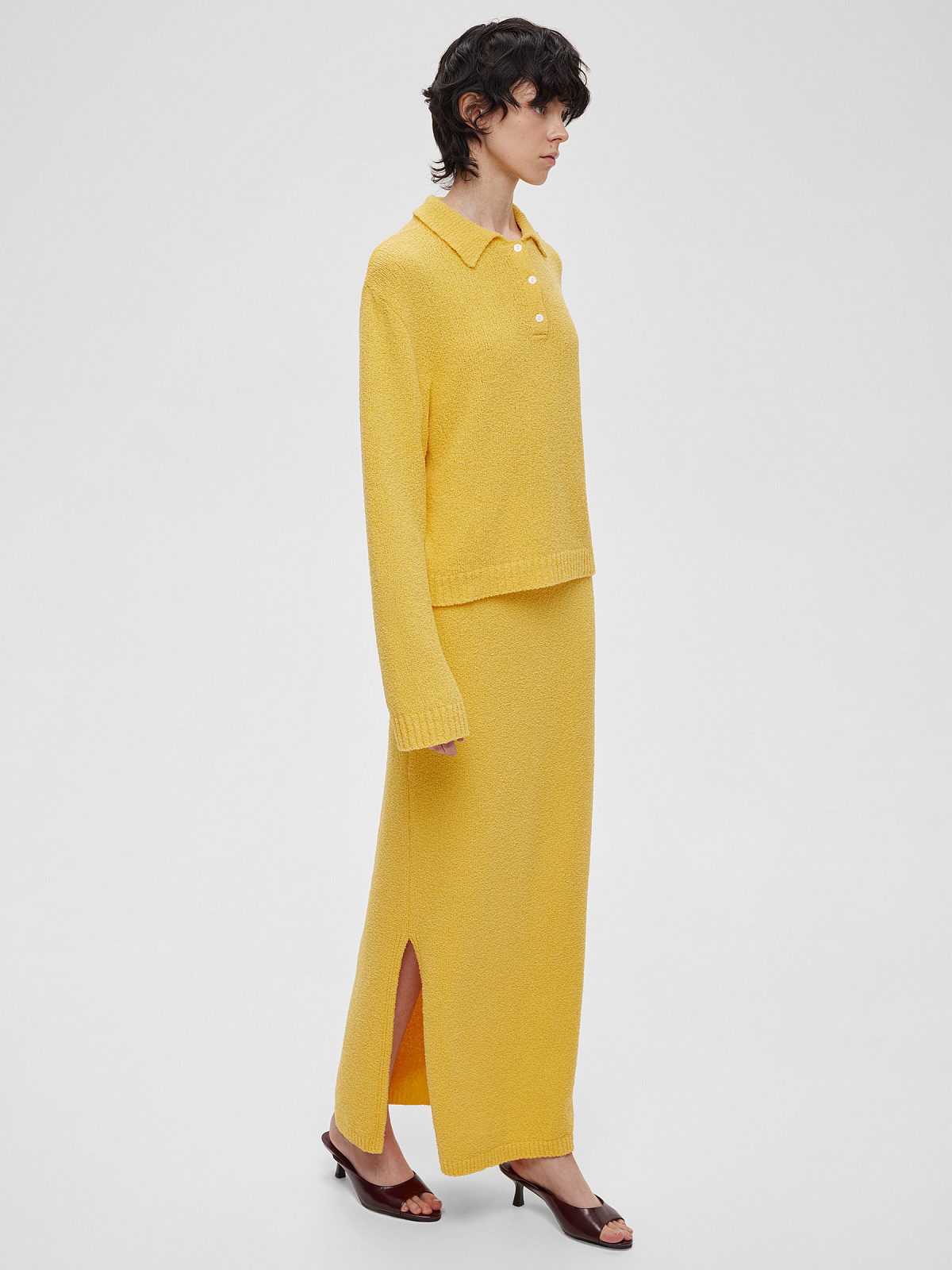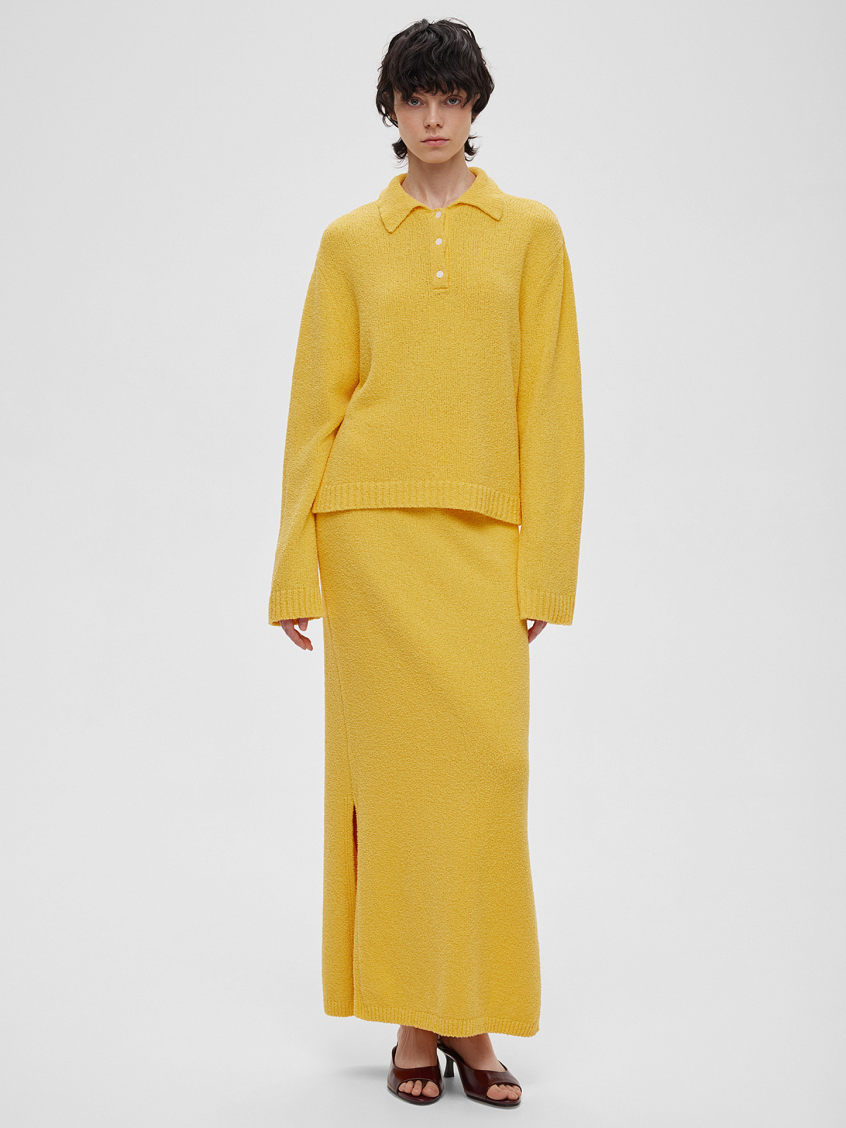 Джемпер регби с отложным воротником свободного кроя. Изготовлен из фактурной пряжи на хлопковой основе с эффектом букле.