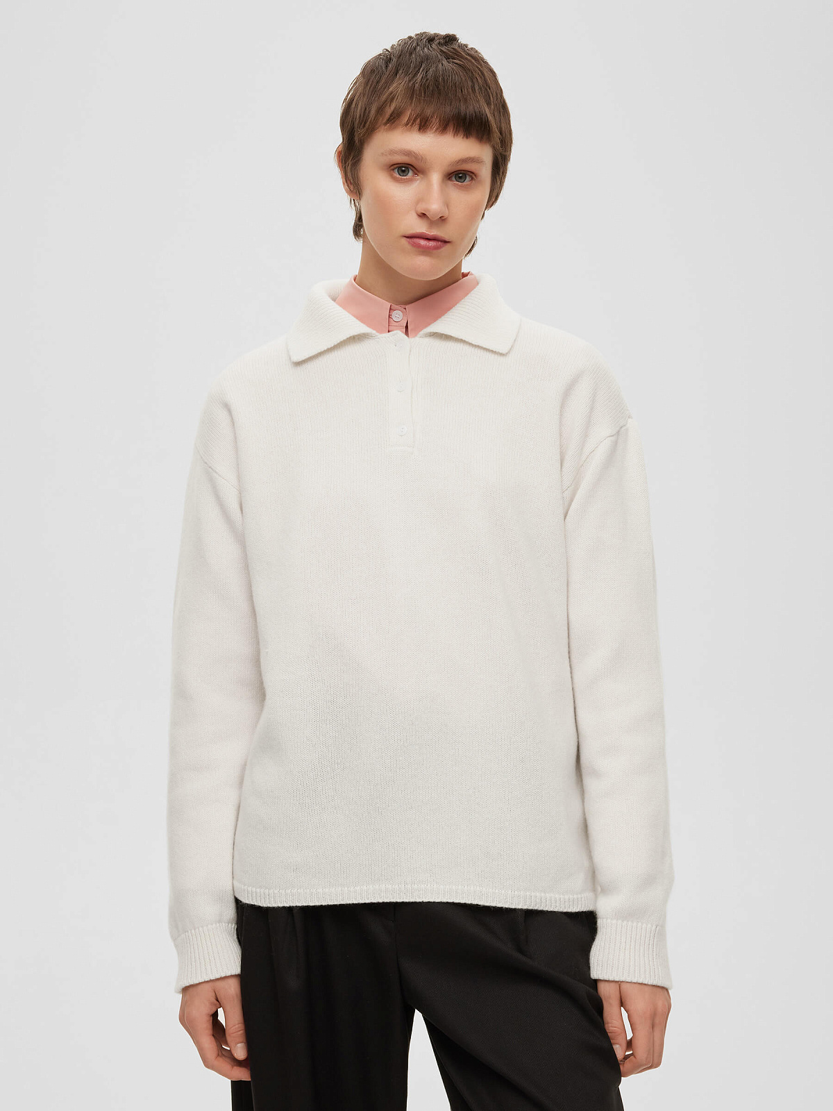 Джемпер регби из кашемира и шерсти с отложным воротником, застежкой на пуговицы по переду и спущенной линией плеча.