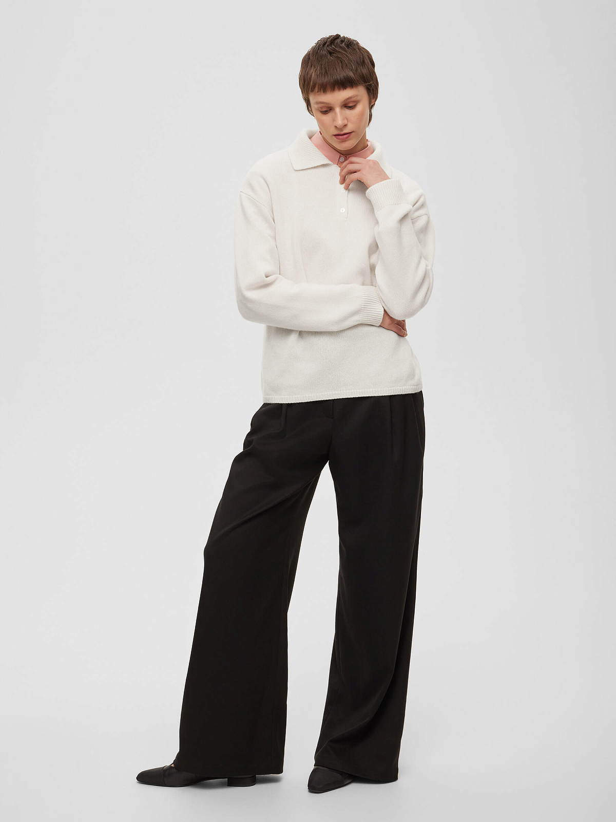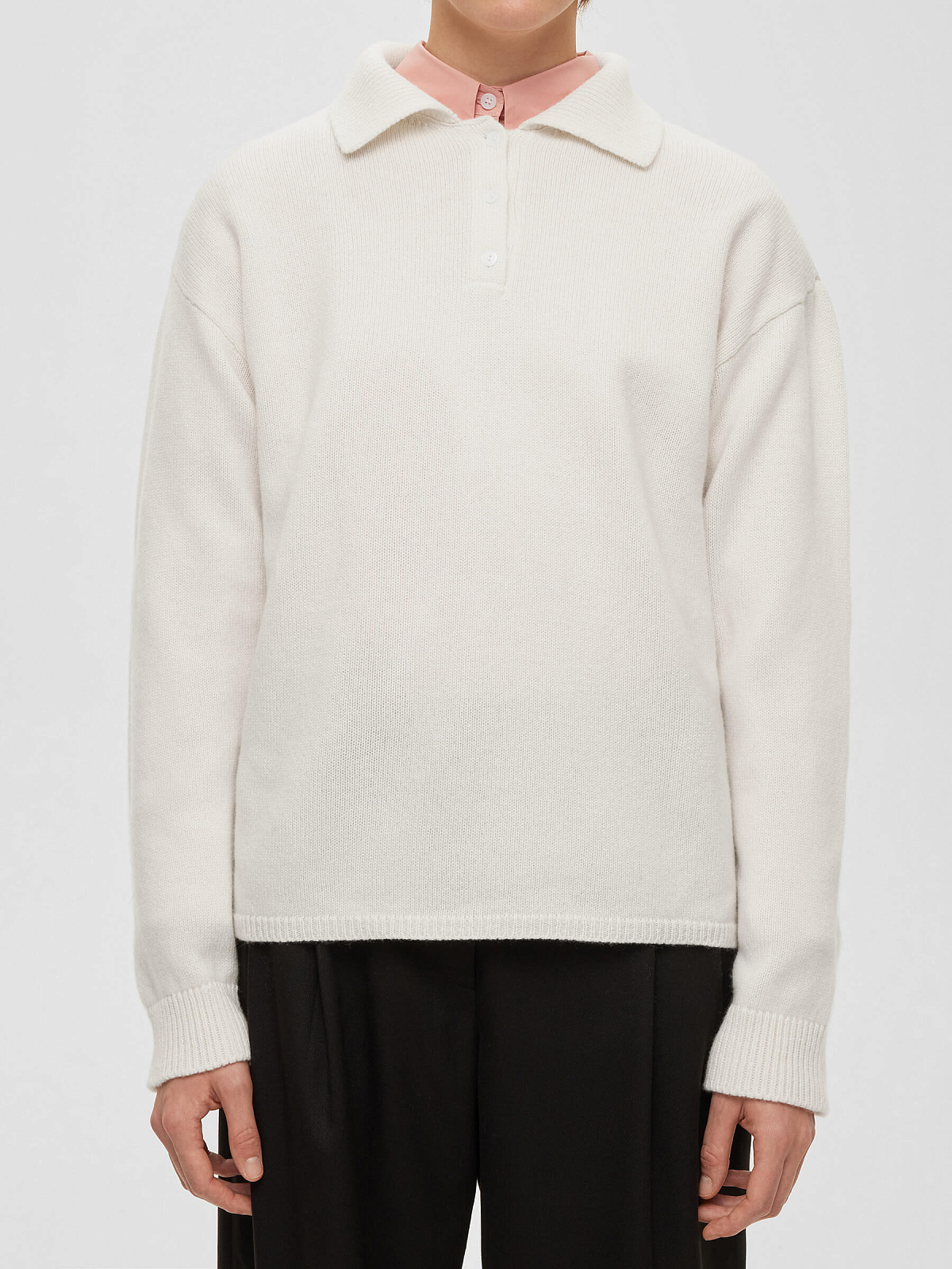 Джемпер регби из кашемира и шерсти с отложным воротником, застежкой на пуговицы по переду и спущенной линией плеча.