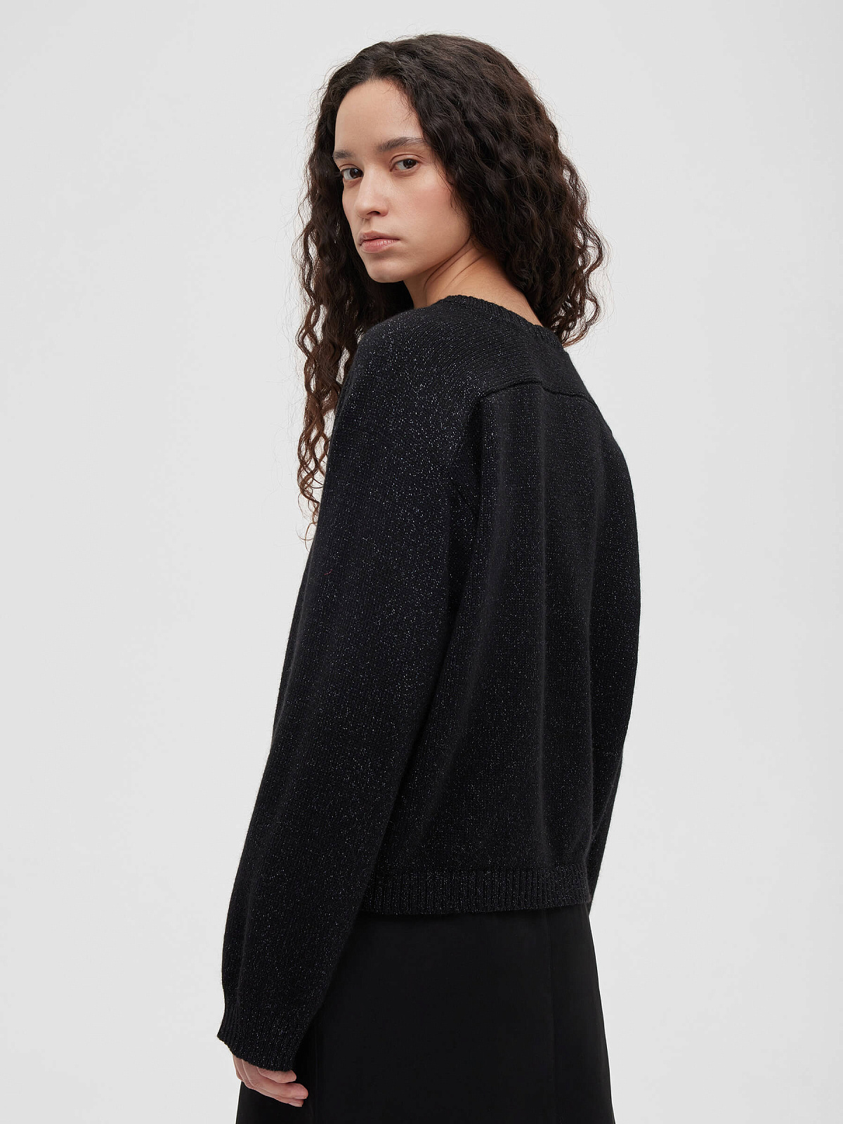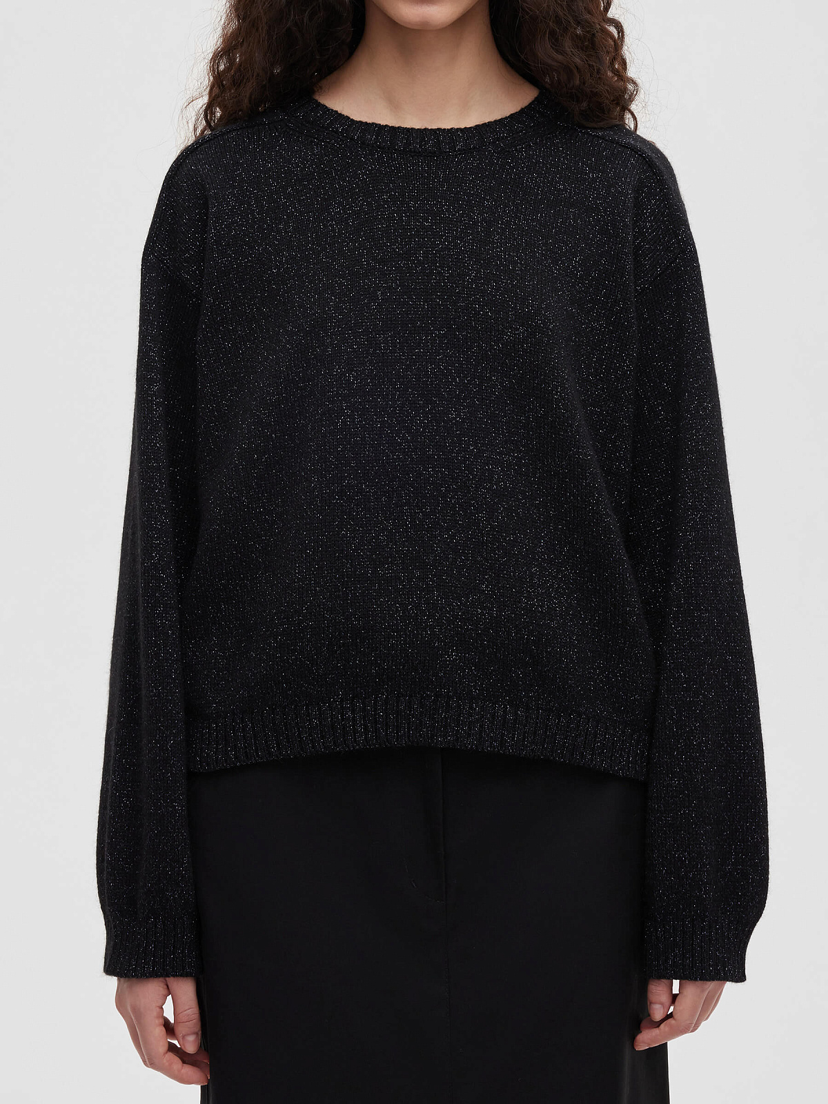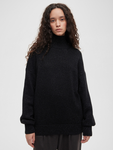 Джемпер с цельным плечом с ангорой с люрексом, черный