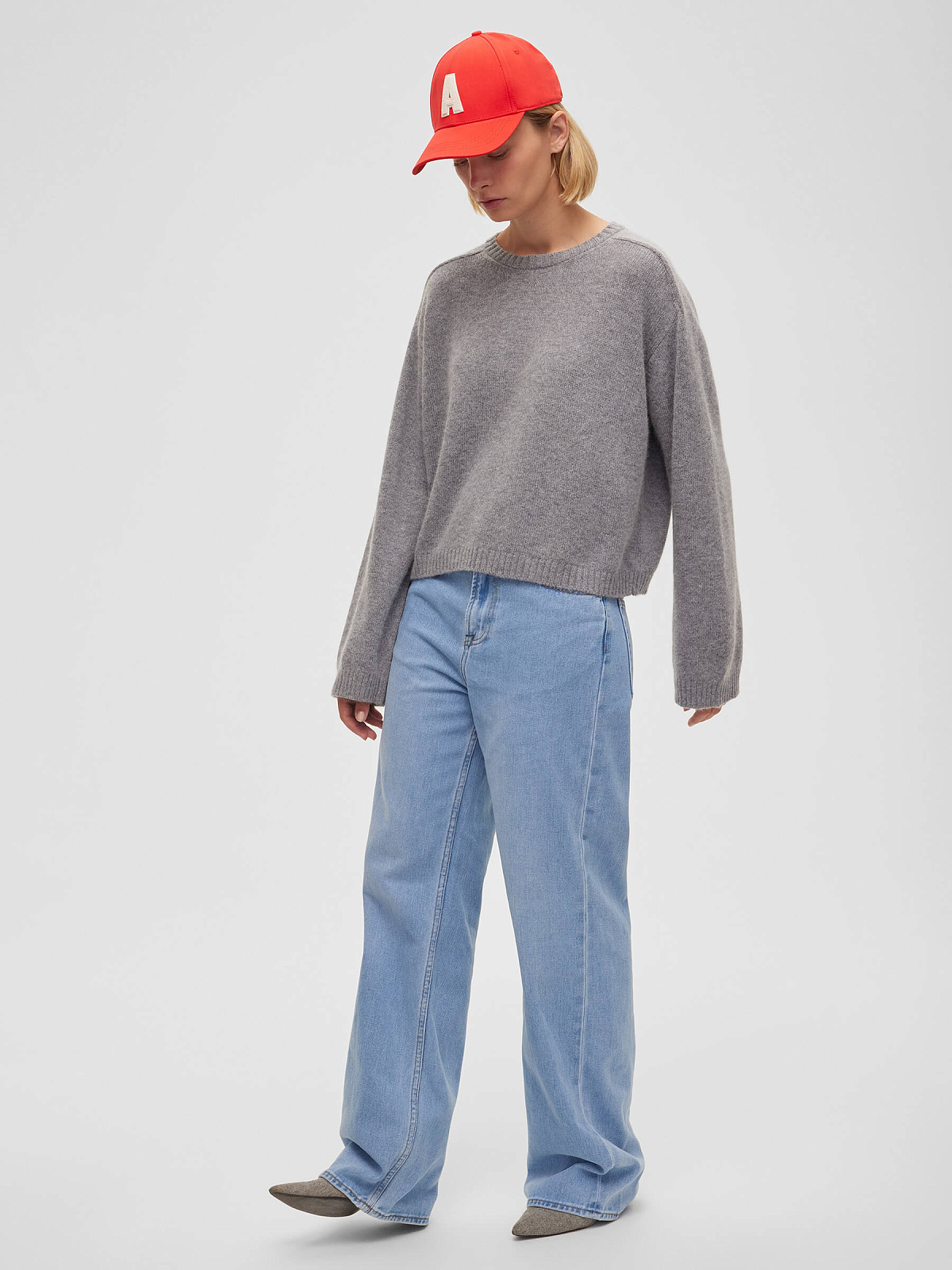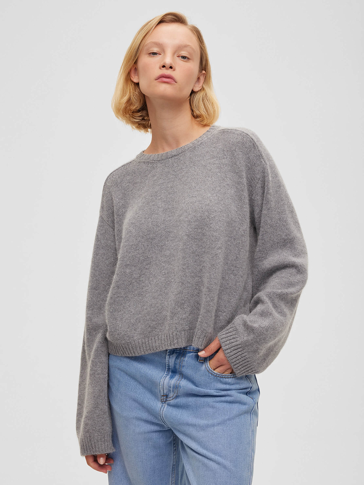 Джемпер свободного кроя с круглым вырезом горловины, цельной линией плеча по спинке и широкими рукавами. Изготовлен из смесовой пряжи улучшенных свойств. Комбинация пуха ангорского кролика и тонкой шерсти в составе создают текстуру с характерным ворсом.