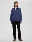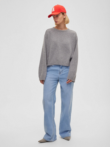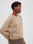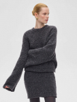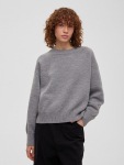 Джемпер свободного кроя с круглым вырезом горловины, цельной линией плеча по спинке и широкими рукавами. Изготовлен из смесовой пряжи улучшенных свойств с шерстью и шелком в составе. Комбинация разных волокон обеспечивает дополнительную прочность и придает изделию более гладкую текстуру.