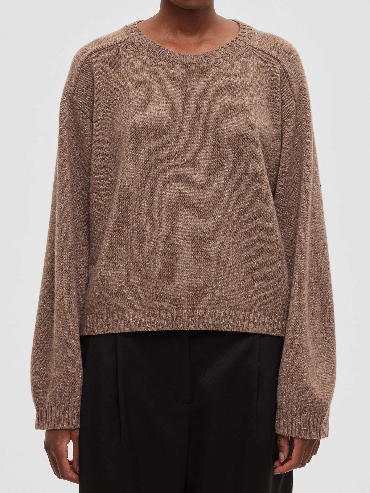 Джемпер с цельным плечом из шерсти с шелком, коричневый