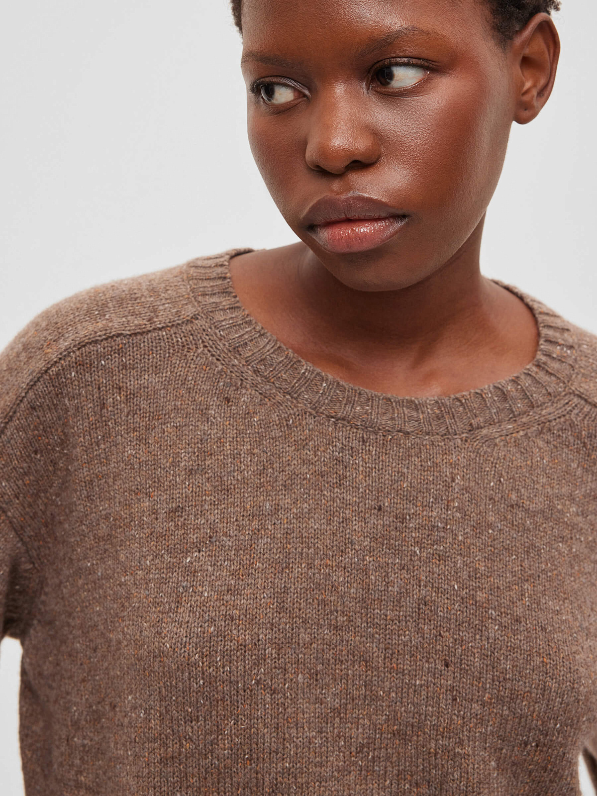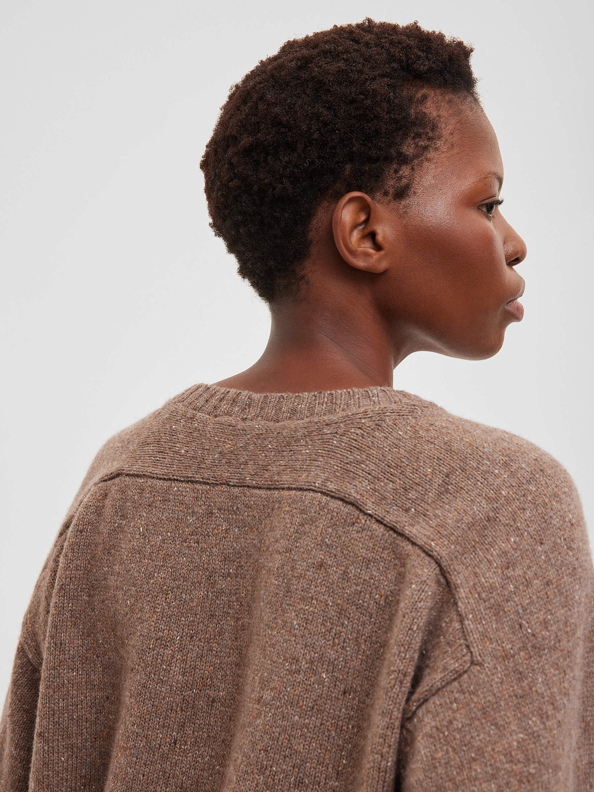Джемпер с цельным плечом из шерсти с шелком, коричневый
