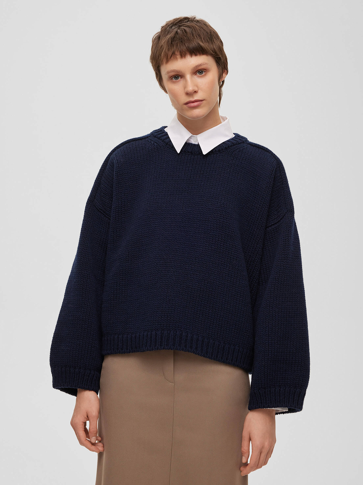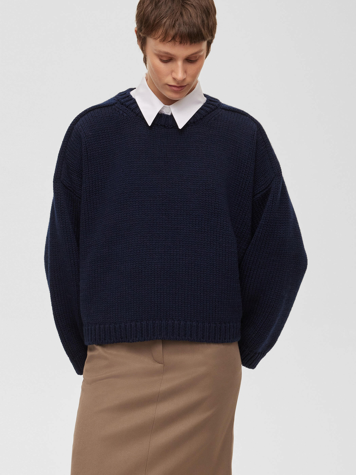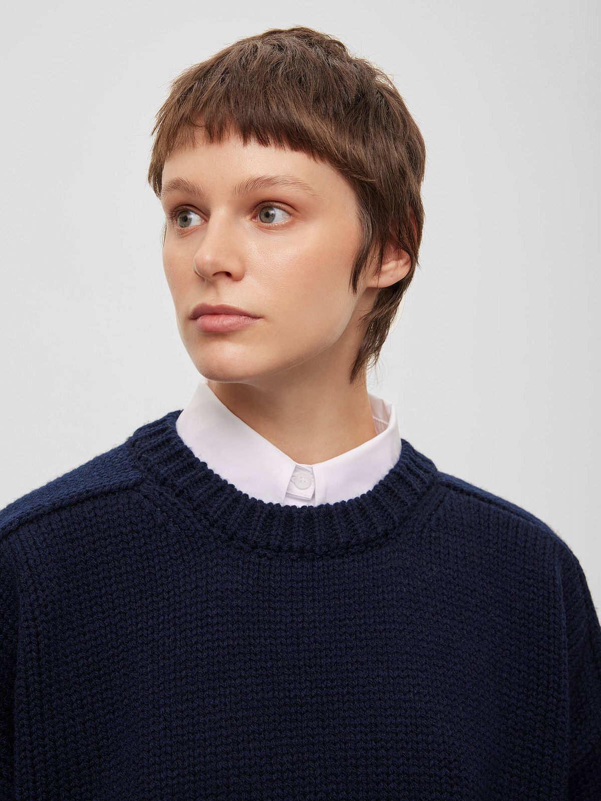 Джемпер с цельным плечом крупной вязки, темно-синий