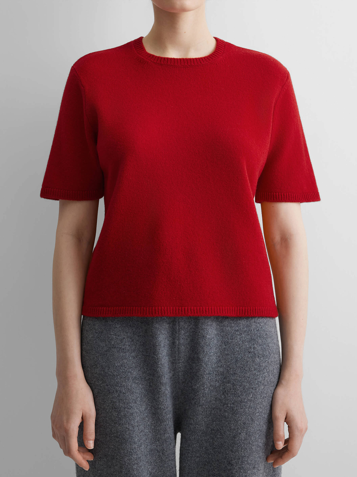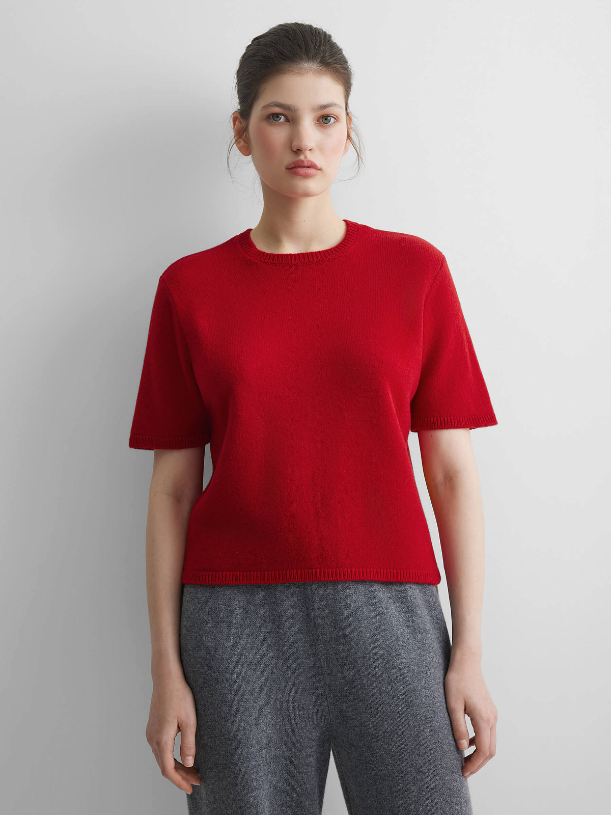 Джемпер с коротким рукавом из 100% мериноса, красный