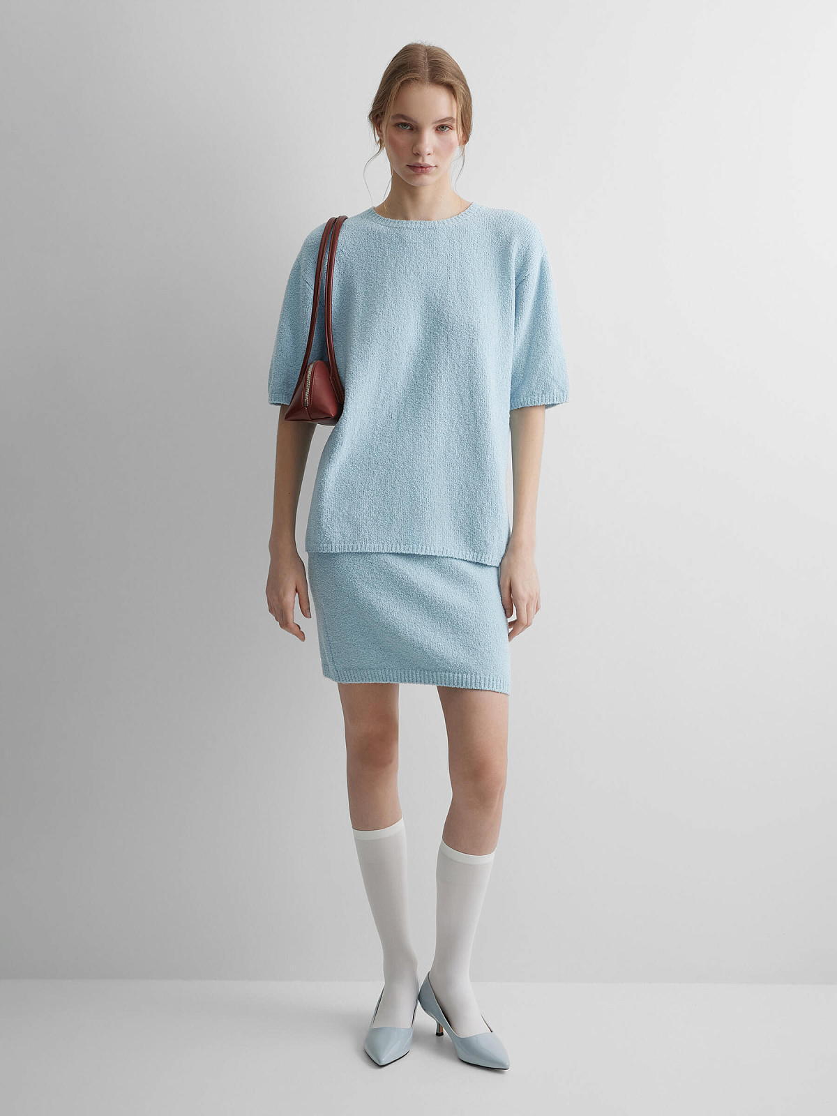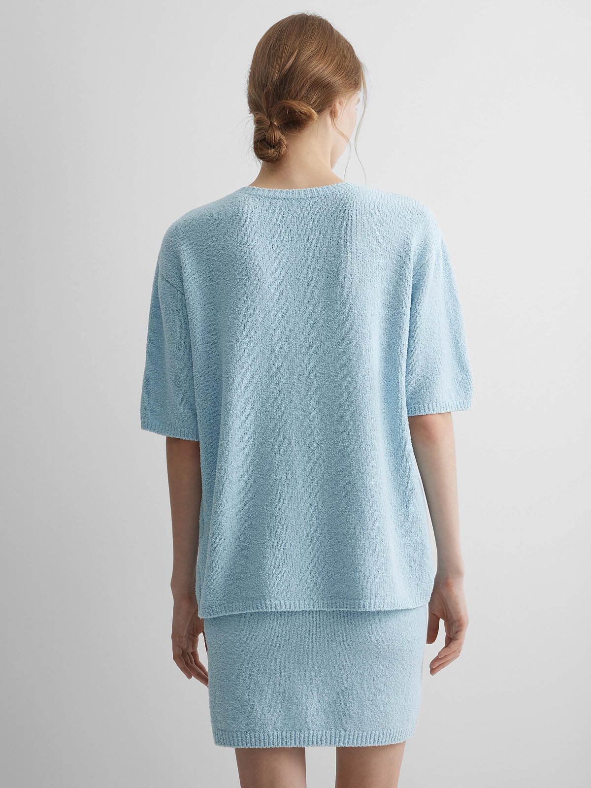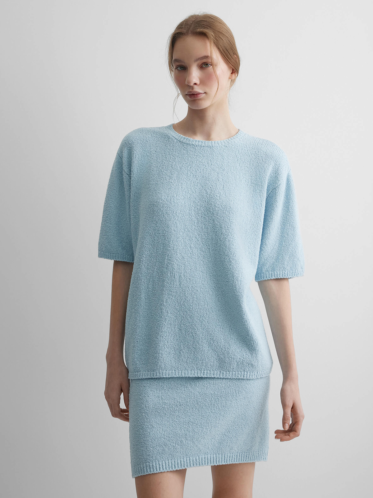 Джемпер с коротким рукавом из хлопка букле, светло-голубой
