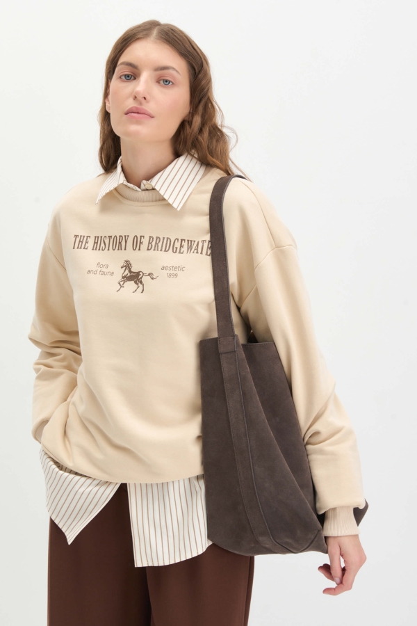 Свитшот из футера 3-х нитки с авторским принтом. Модель свободного силуэта со спущенной линией плеча и манжетами из основного материала.