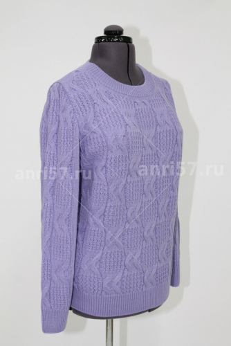 Джемпер полуприлегающего силуэта из мягкого вязаного полотна. По полочке и центру рукава ажурный узор. Горловина округлой формы с обтачкой. Рукав втачной на резинке по низу.