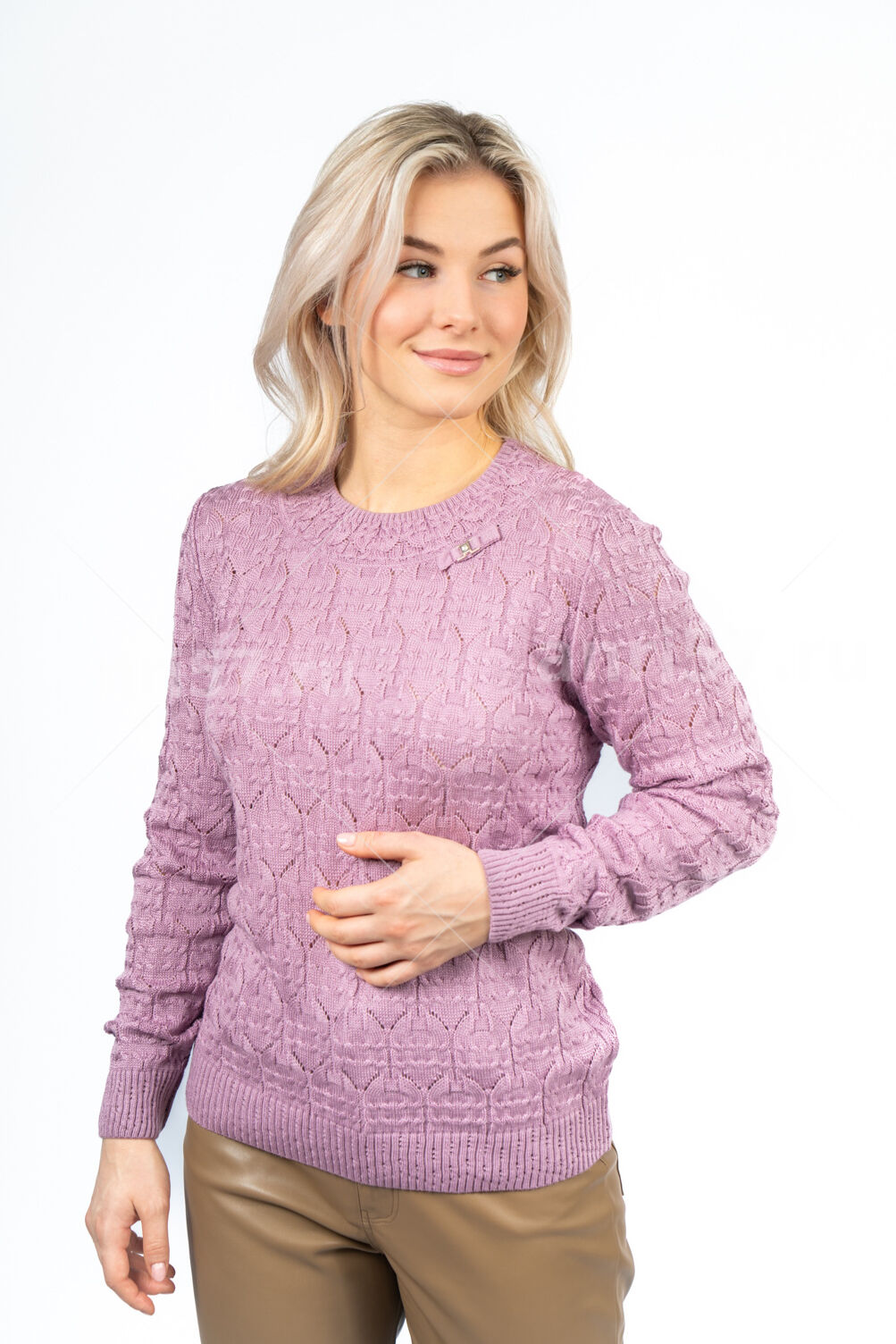 Джемпер полуприлегающего силуэта из ажурного вязаного полотна. Рукав втачной, на "резинке" по низу. Горловина округлой формы с обтачкой. Низ изделия на "резинке".