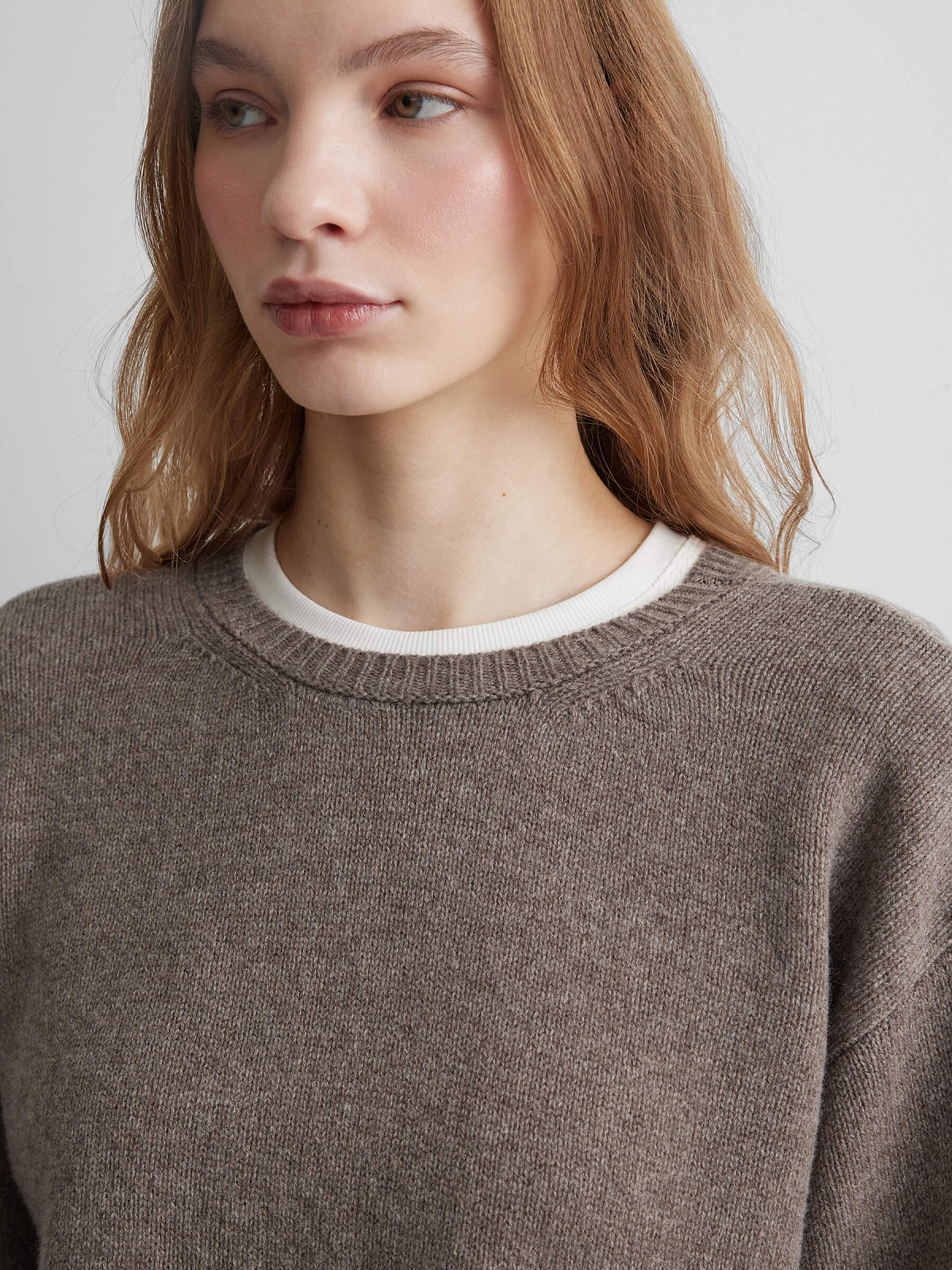 Джемпер свободного кроя из 100% мериноса, коричневый меланж
