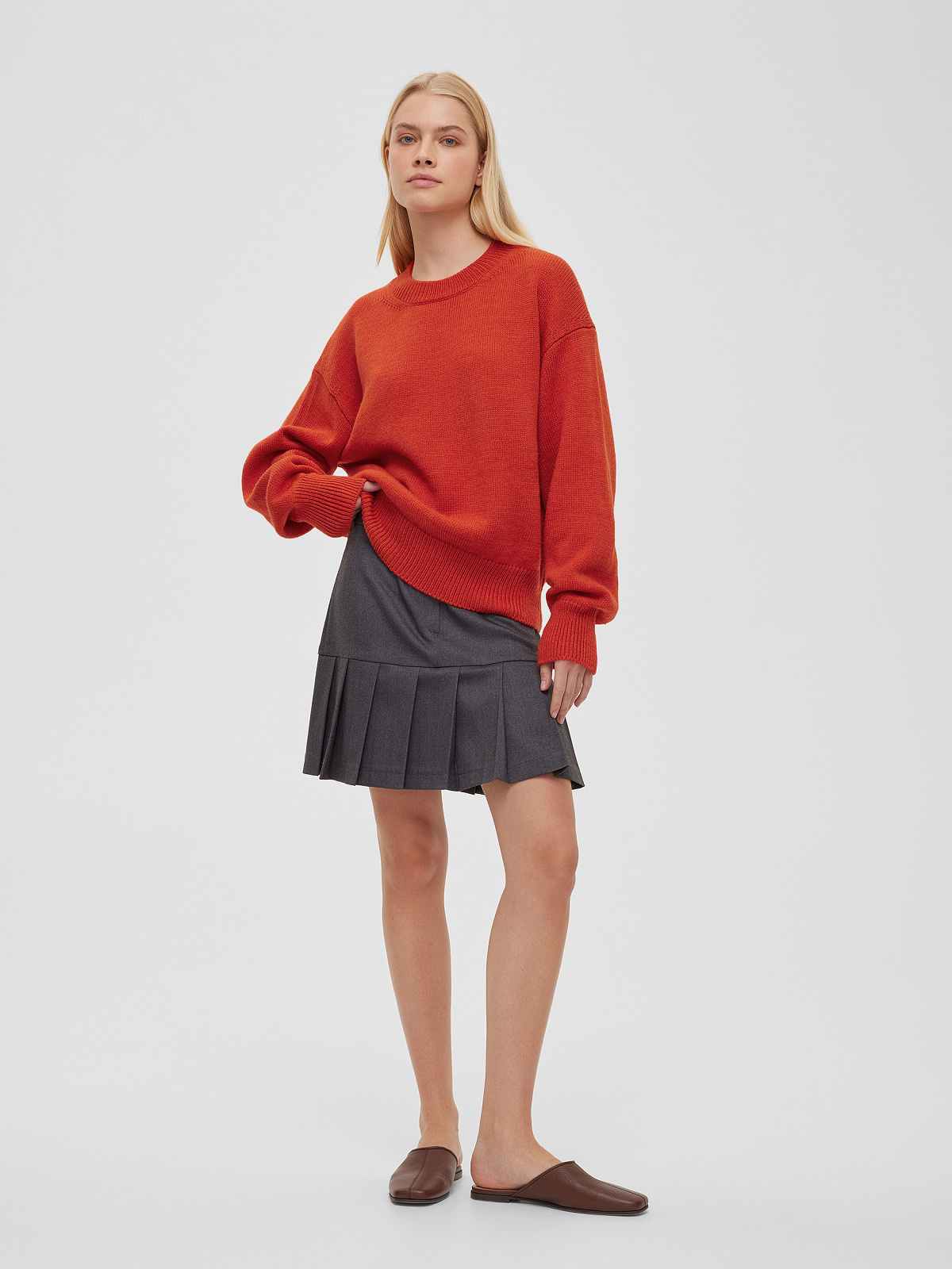 Джемпер свободного кроя с круглой горловиной и мягкой линией плеча — одна из самых любимых базовых моделей Aim Clo, к которой клиенты возвращаются снова и снова, выбирая её в разных оттенках. Спокойный силуэт и комфортная посадка делают его надёжной частью повседневного гардероба.