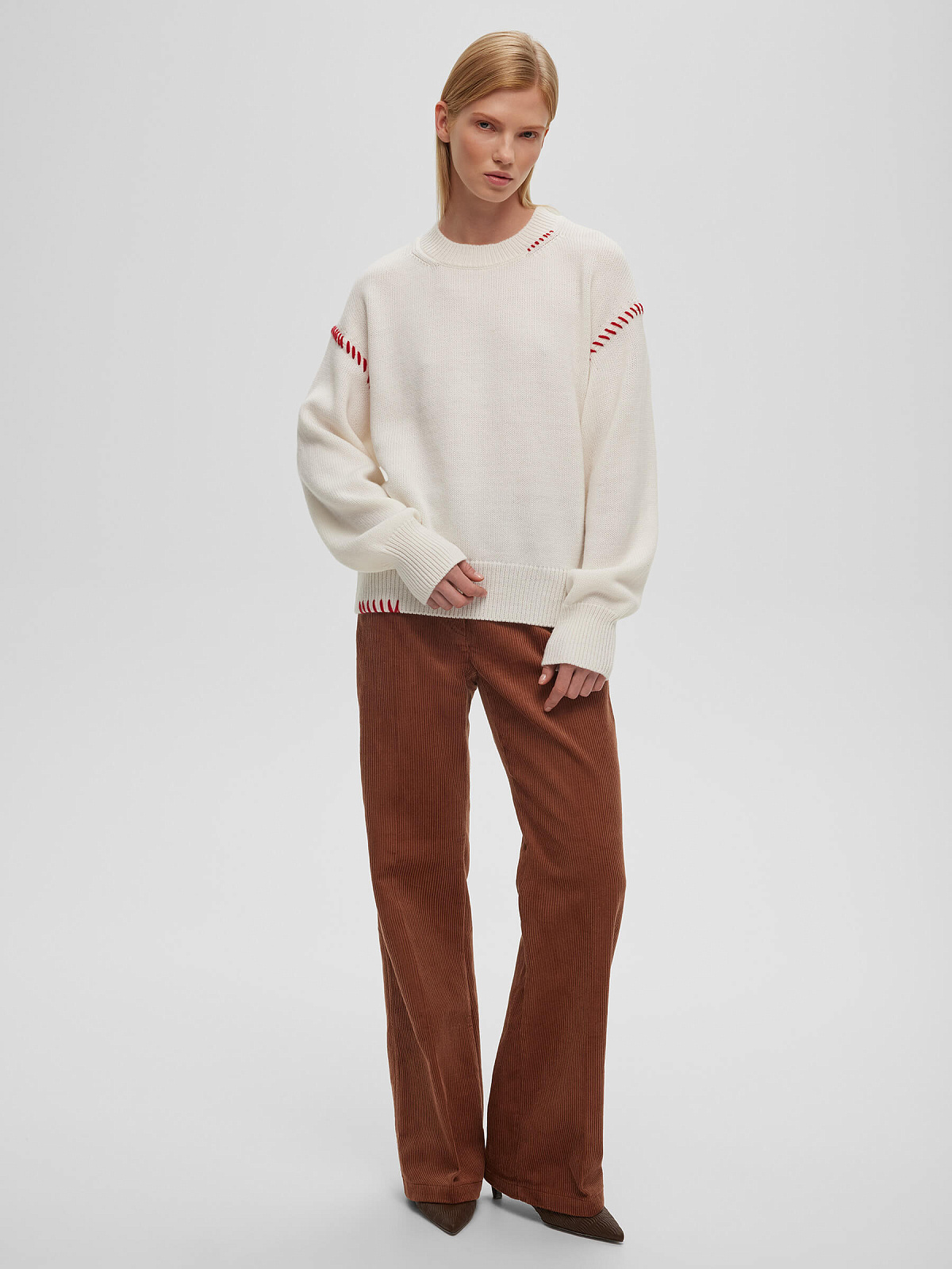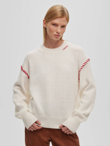 Джемпер свободного кроя с нитями, белый