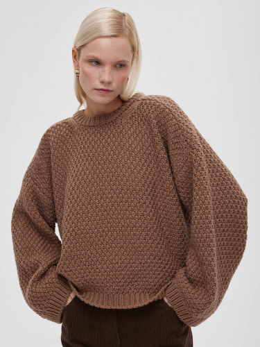 Джемпер свободного кроя с нитями из шерсти и акрила со спущенной линией плеча.