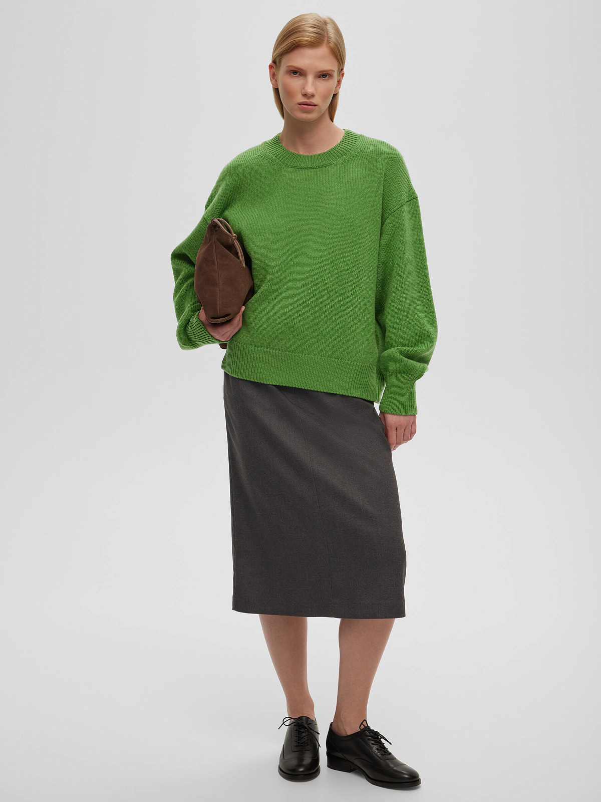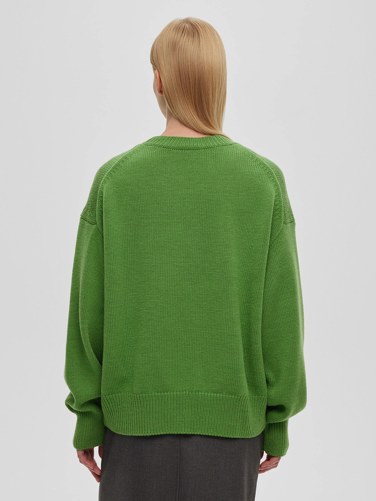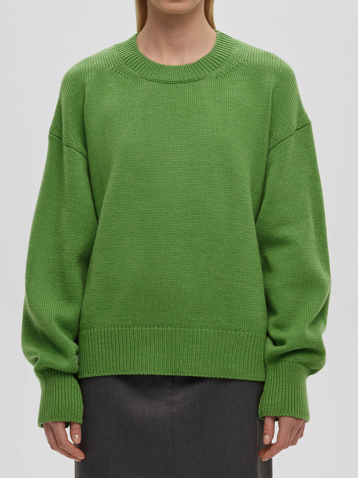 Джемпер свободного кроя с круглой горловиной и мягкой линией плеча — одна из самых любимых базовых моделей Aim Clo, к которой клиенты возвращаются снова и снова, выбирая её в разных оттенках. Спокойный силуэт и комфортная посадка делают его надёжной частью повседневного гардероба.