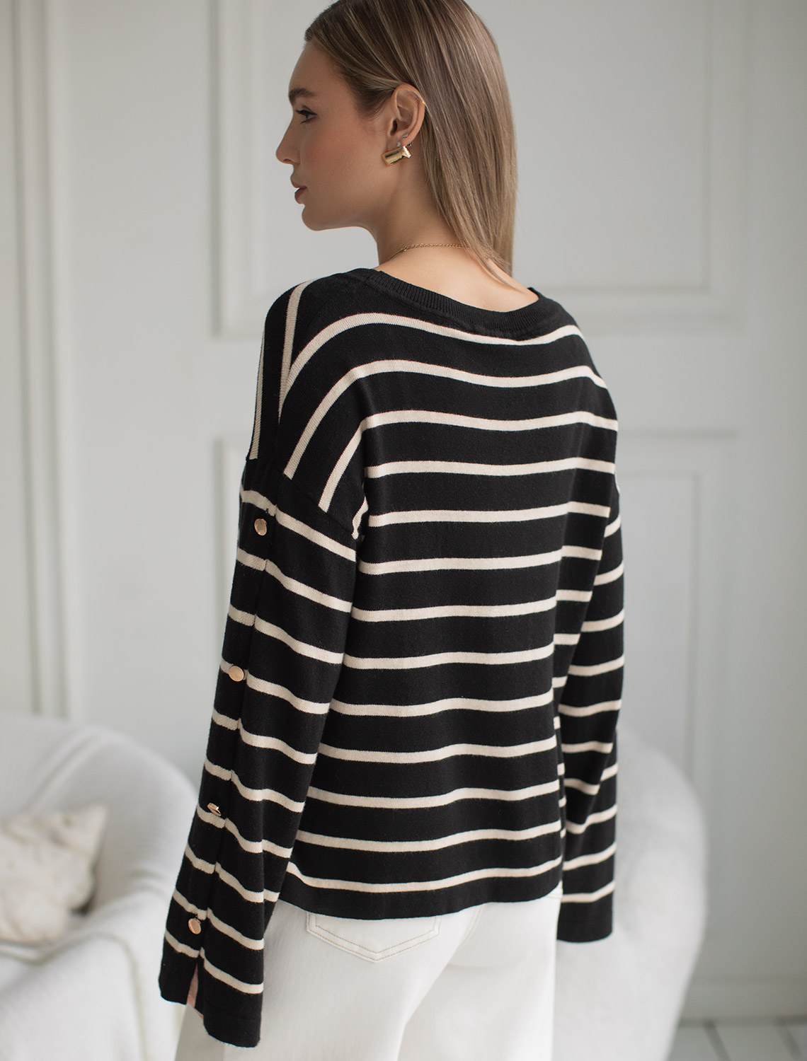 Джемпер тонкой вязки из хлопка и вискозы с золотистыми пуговицами